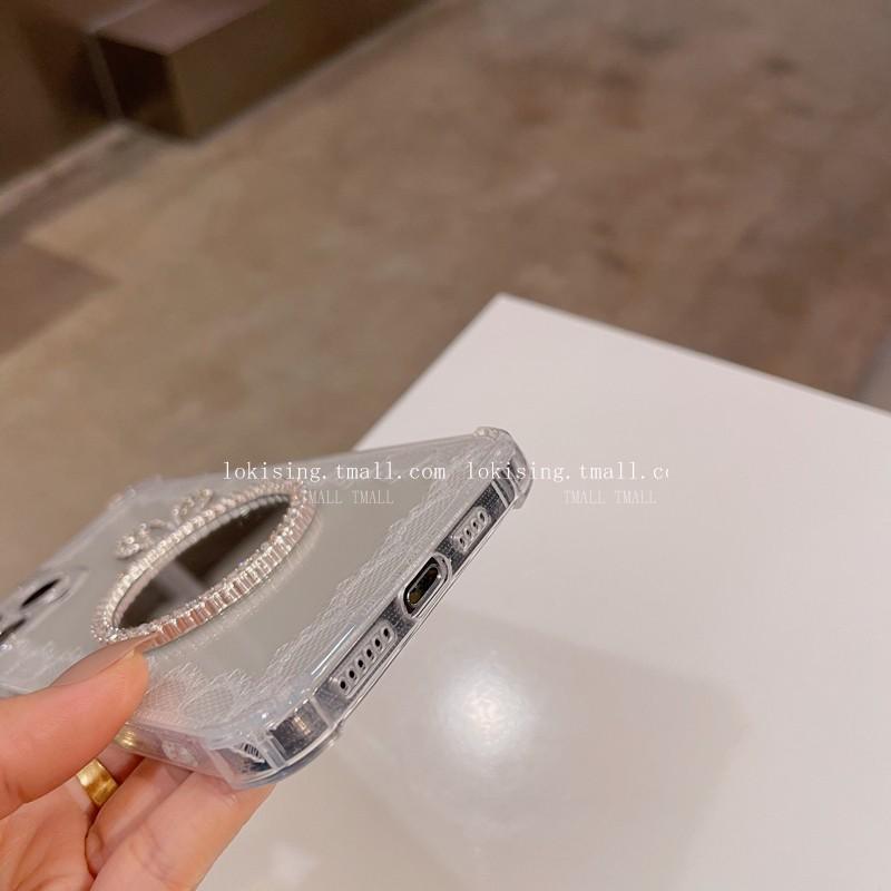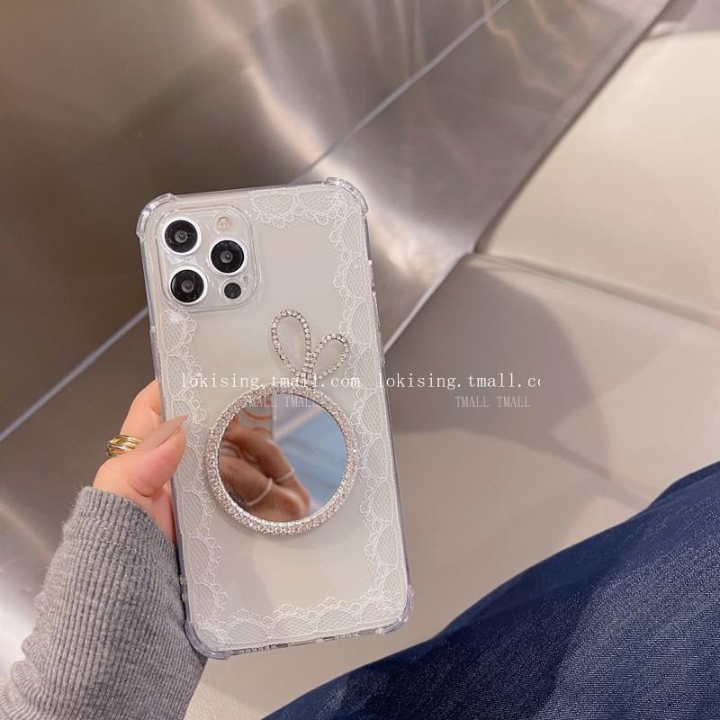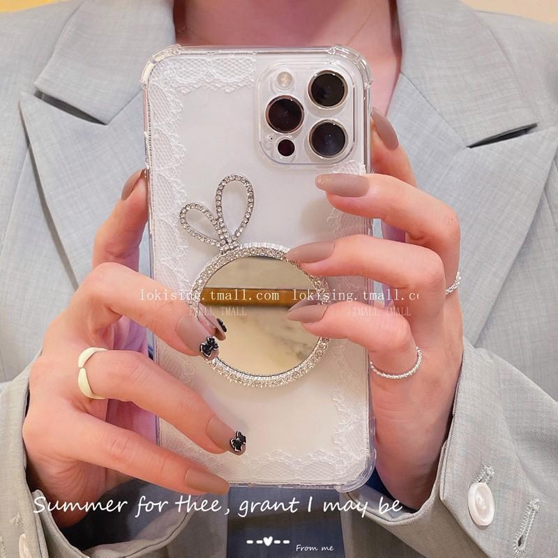 蕾絲兔子補妝鏡適用iPhone14手機殼15pro透明殼13promax蘋果13創意14Promax軟膠13pro防摔12新款12promax女款