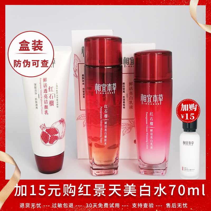 相宜本草紅石榴套裝鮮活亮顏潔顏乳水乳乳臉部護膚品嫩膚補水美白