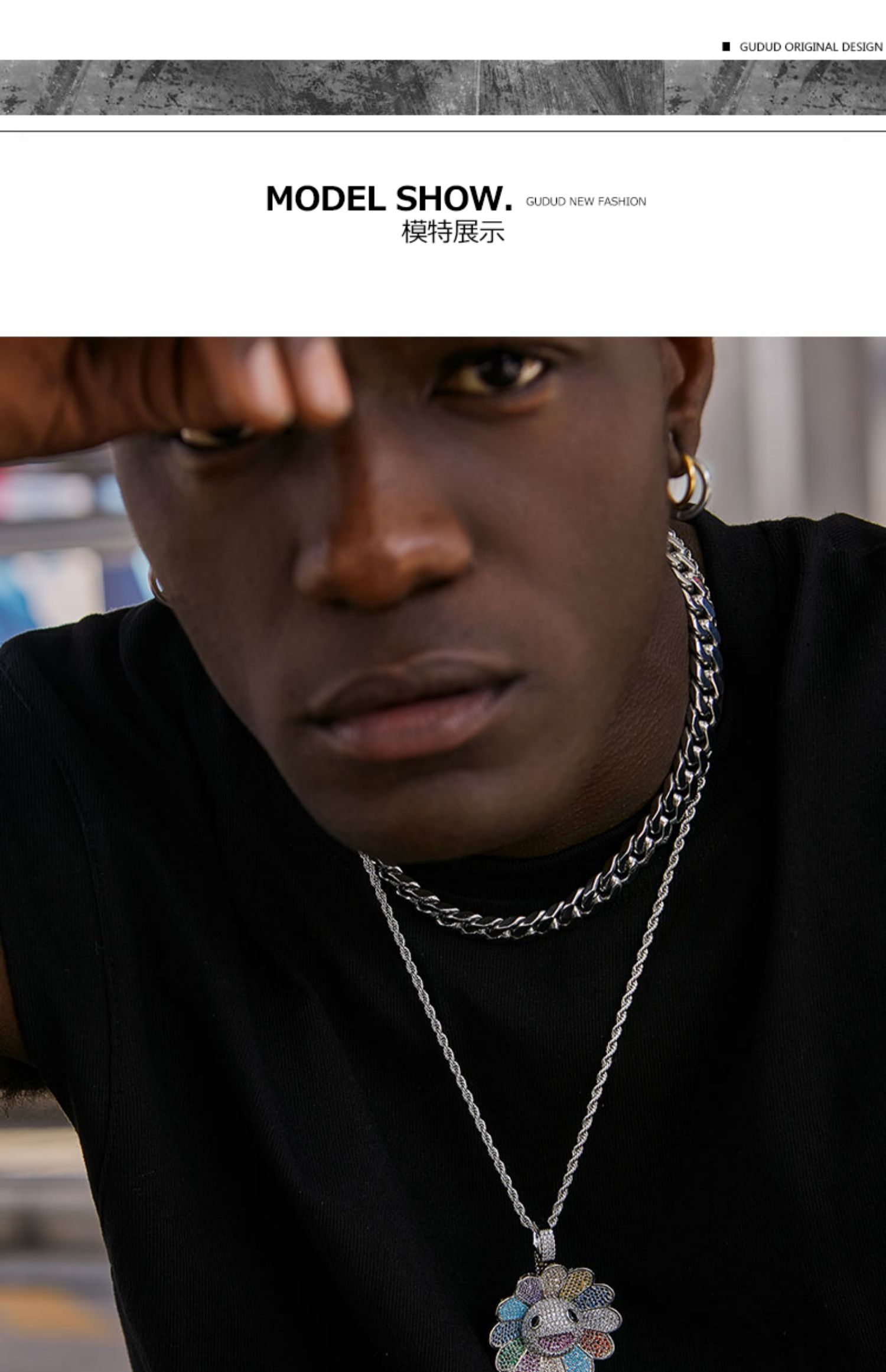 GD正品帝師同款七彩太陽花項鏈吊墜旋轉動嘻哈潮牌男ins搭衛衣鏈