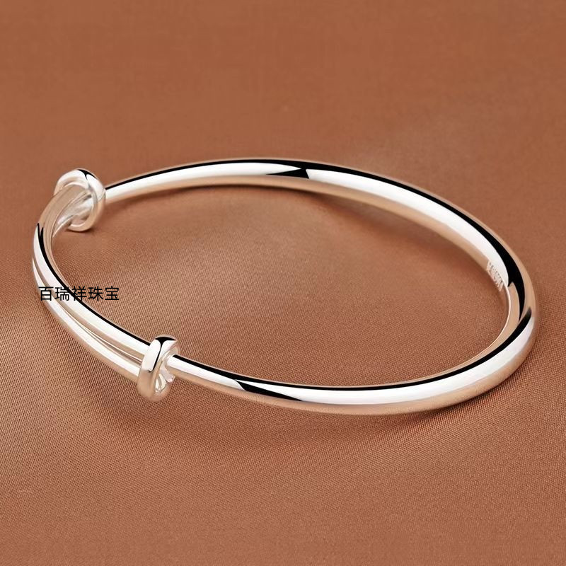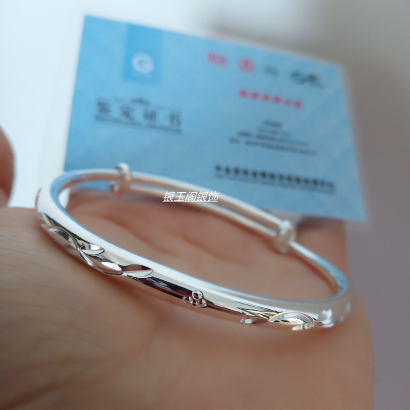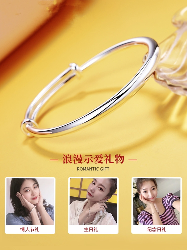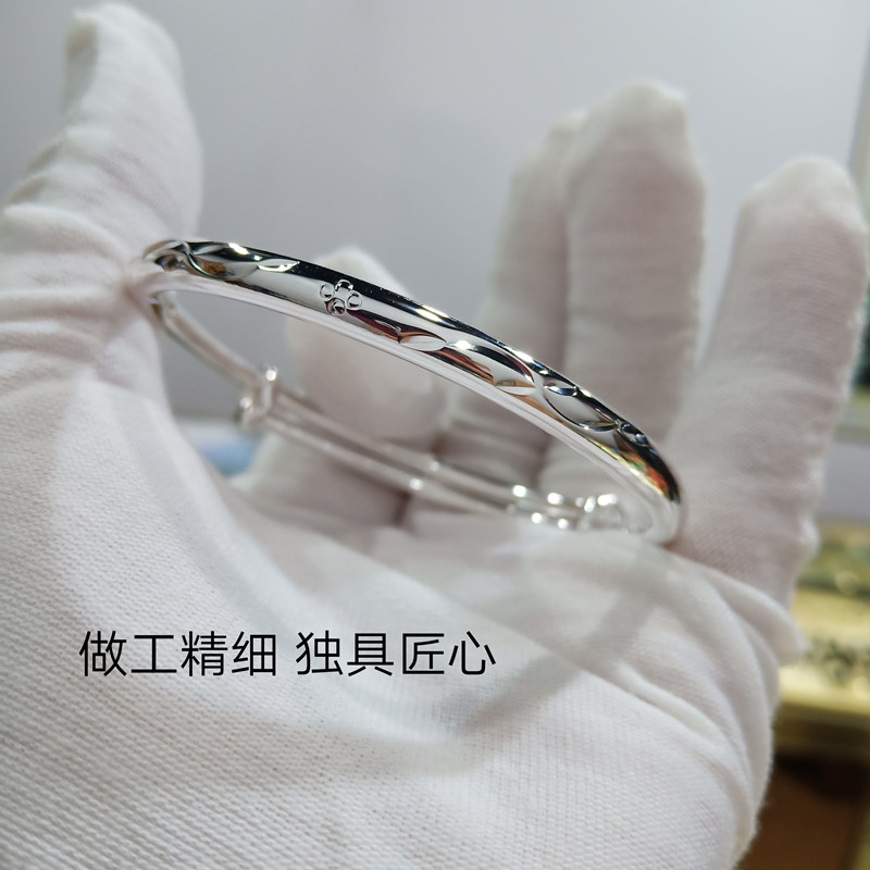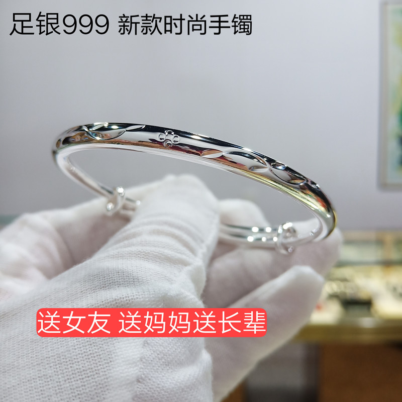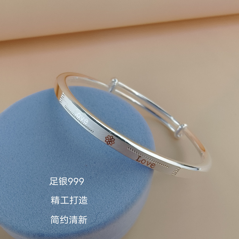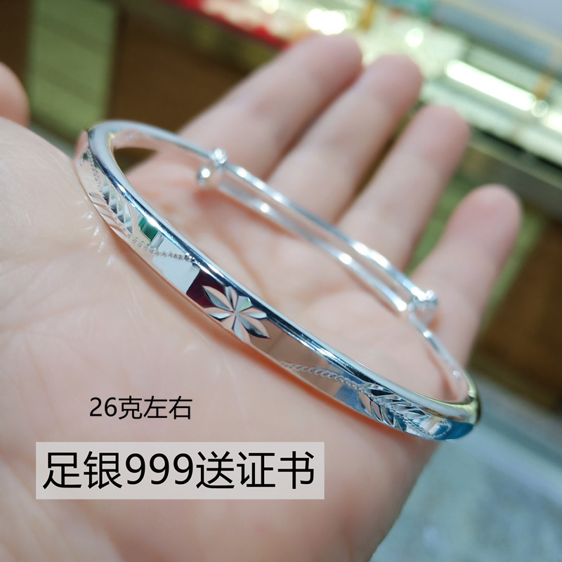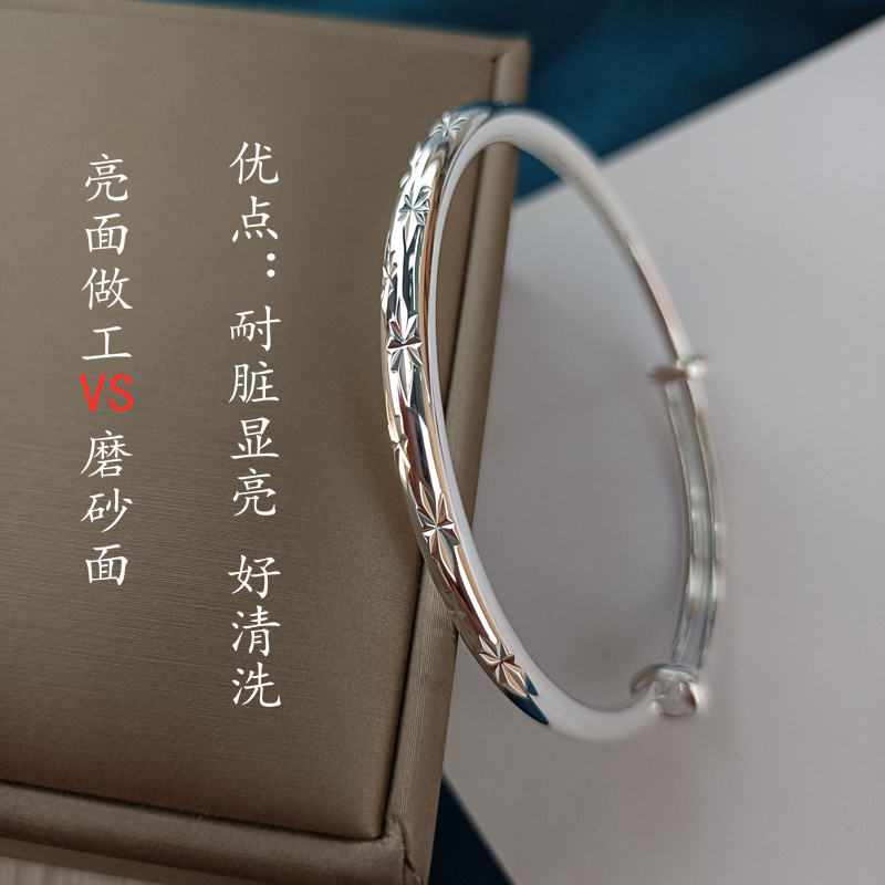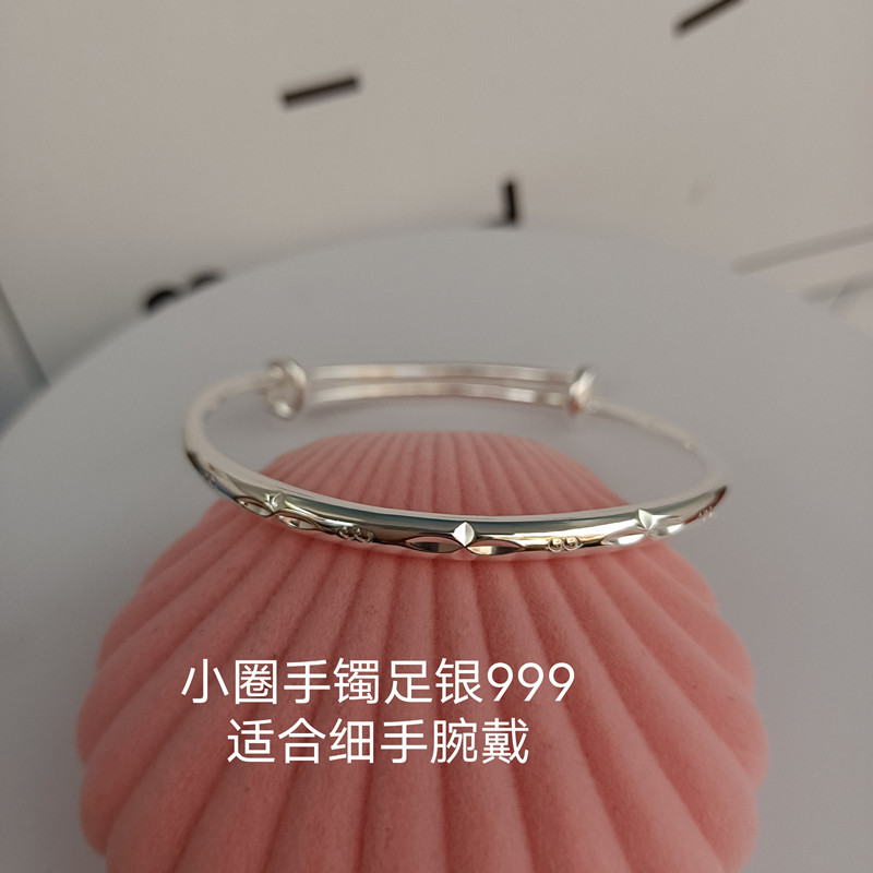 銀鐲子女純銀9999足銀手鐲滿天星光面實心手環手鏈年輕款生日禮物