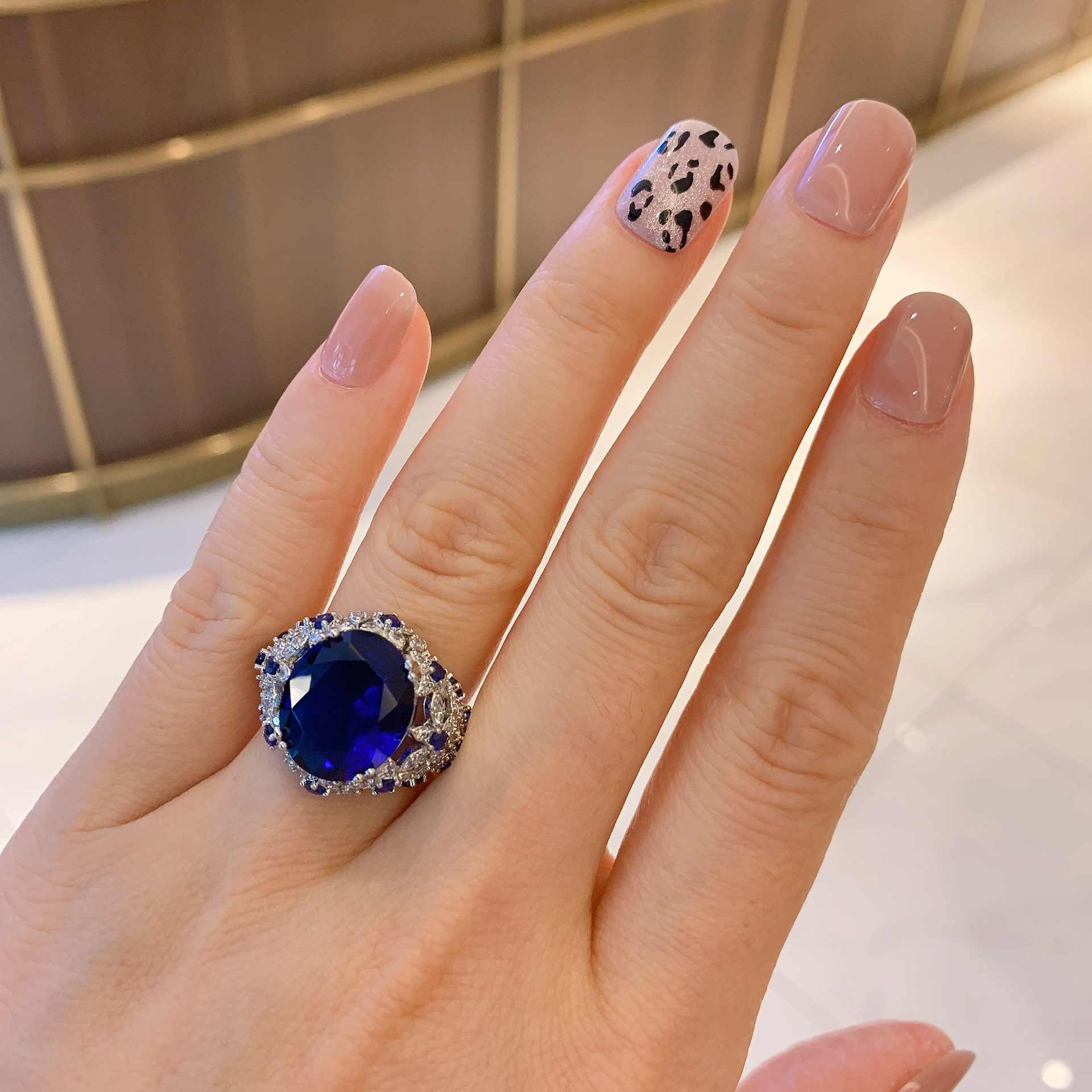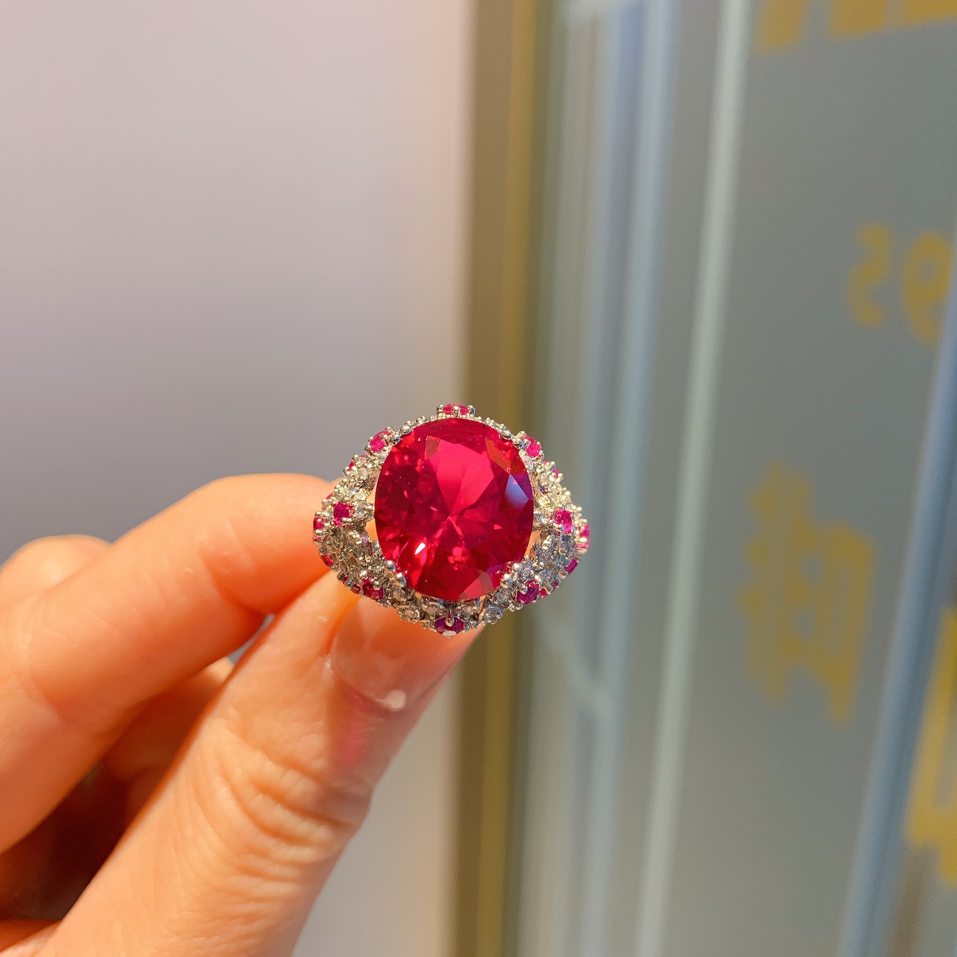 歐洲中古奢華復古鴿血紅寶石戒指高級感祖母綠藍水晶新娘宴會配飾