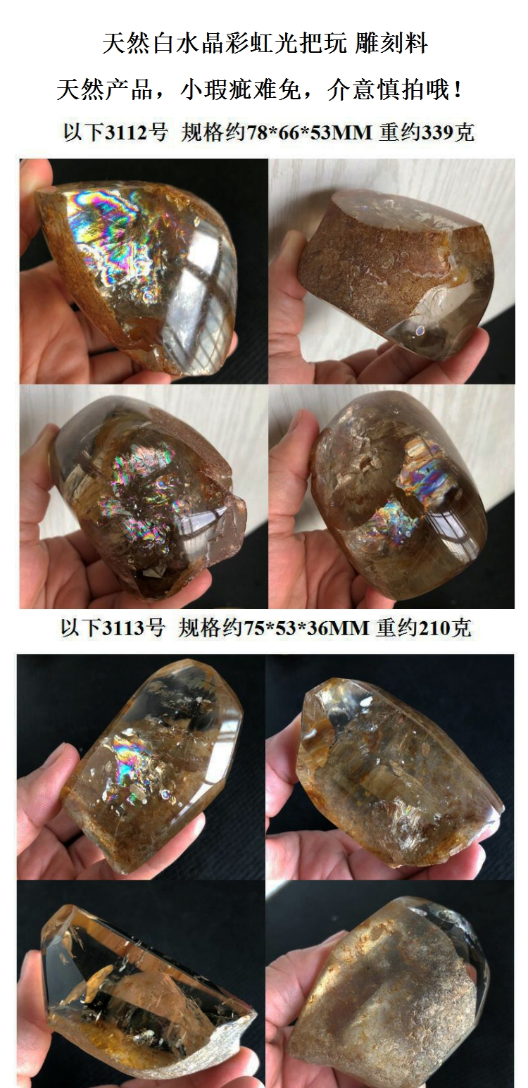 千蕊天然水晶原石把玩 白水晶彩虹光手把件 帶皮原石雕刻料實物