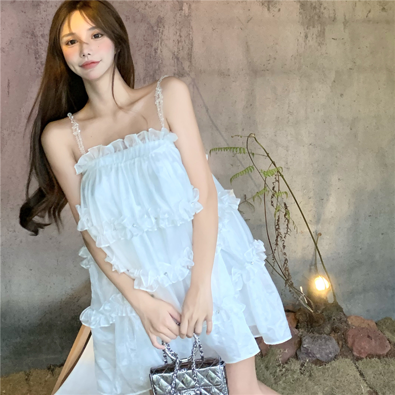 木蘭買手店ROCHA ROMA 2R春夏水晶吊帶木耳邊紗裙連衣裙甜美可愛