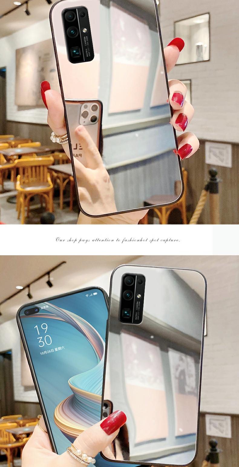 補妝鏡子玻璃鏡面適用華為榮耀30手機殼女生曲屏30s新品30pro手機套曲屏v30殼限量版女款外殼爆款女三十夏天p
