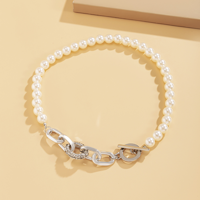 OT扣人造珍珠項鏈女夏季 歐美ins不對稱小眾設計鑲鉆酷酷的鎖骨鏈