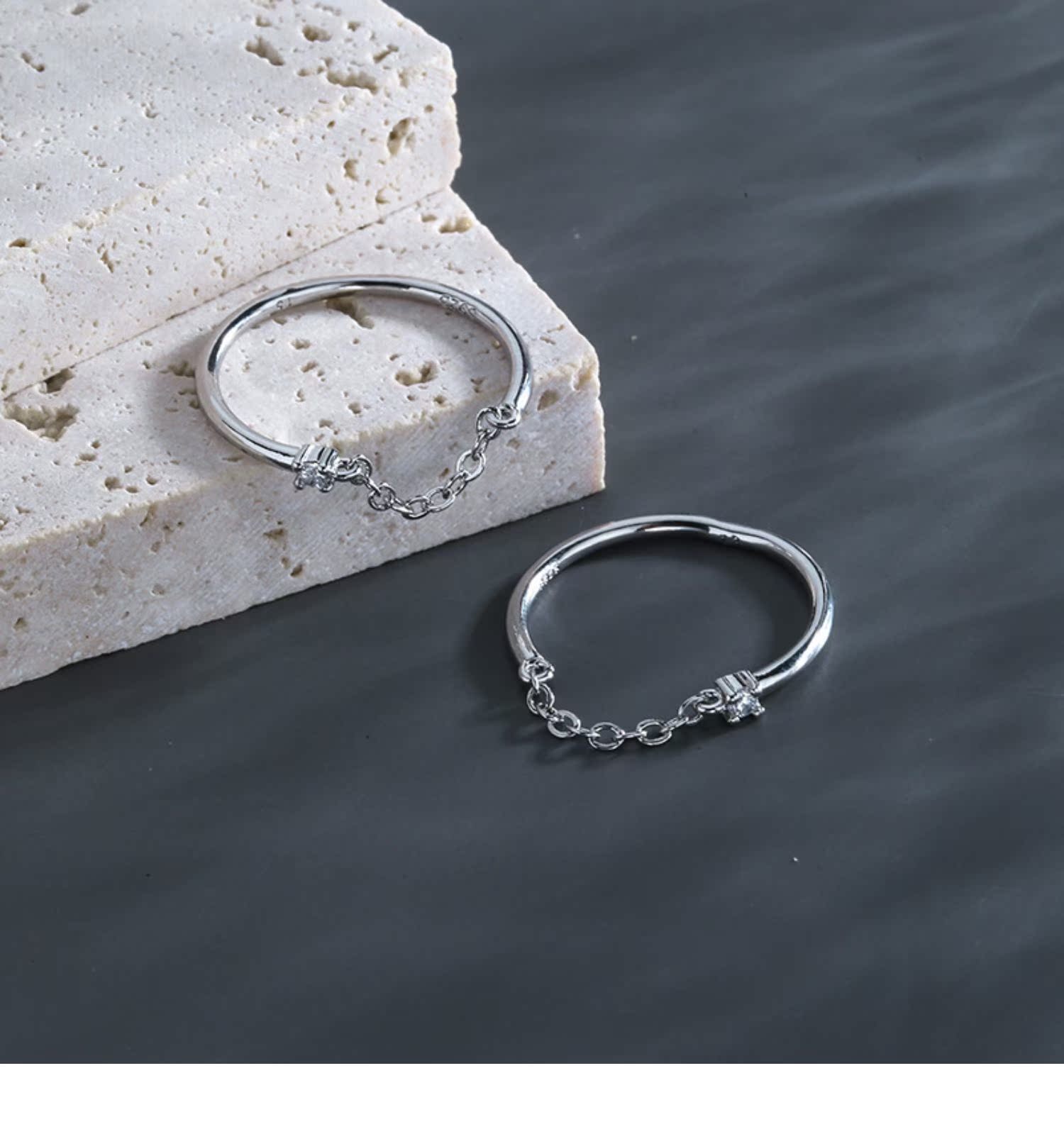 s925銀小鉆鏈條戒指ins小眾設計感冷淡風個性戒子學生開口食指戒