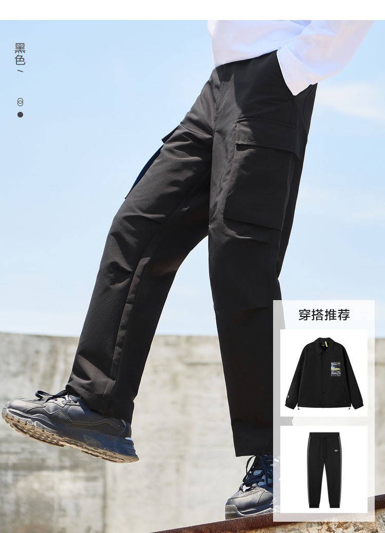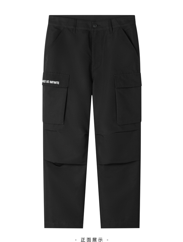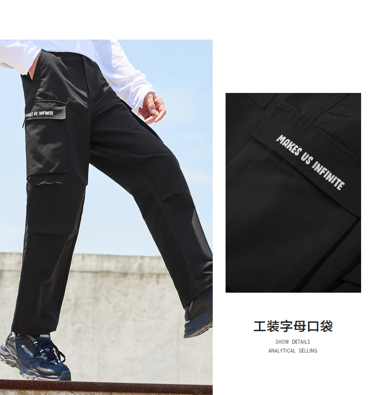 森馬休閑褲男2023秋季新款寬松港風工裝褲子男士黑色潮流直筒長褲