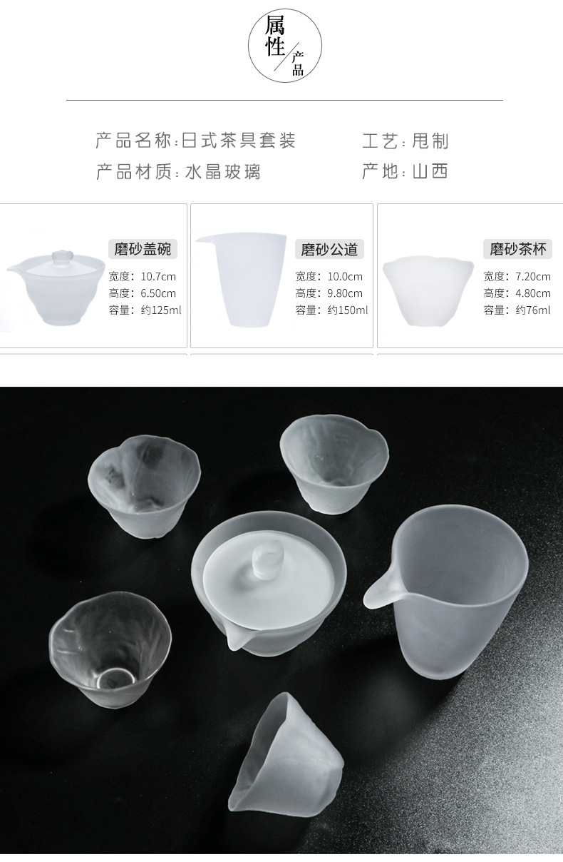 中式磨砂白品茗杯玻璃茶具蓋碗三才泡茶碗功夫茶杯子泡茶小套辦公