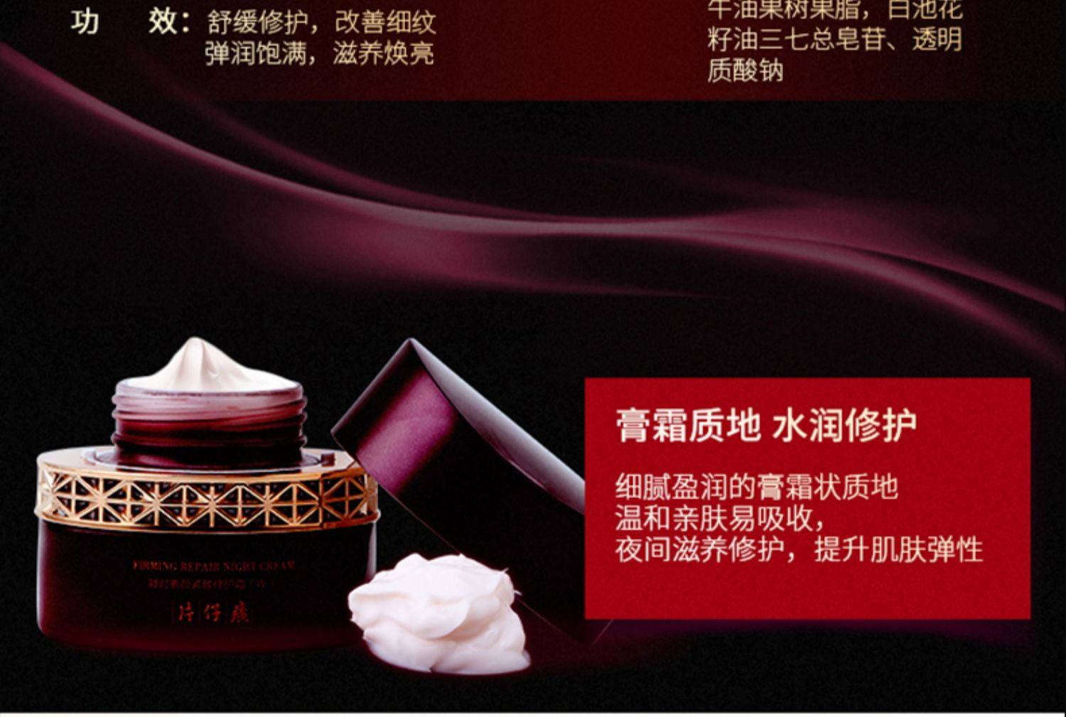 片仔癀凝時素顏緊致滋養霜夜霜片仔廣保濕改善細紋抗皺晚霜片仔黃