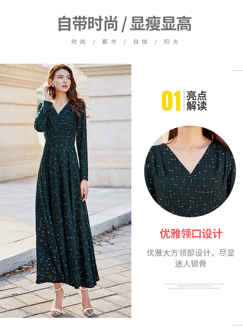 雪妃黛春秋裙子女連衣裙長袖2023年新款氣質綠色收腰顯瘦過膝長裙