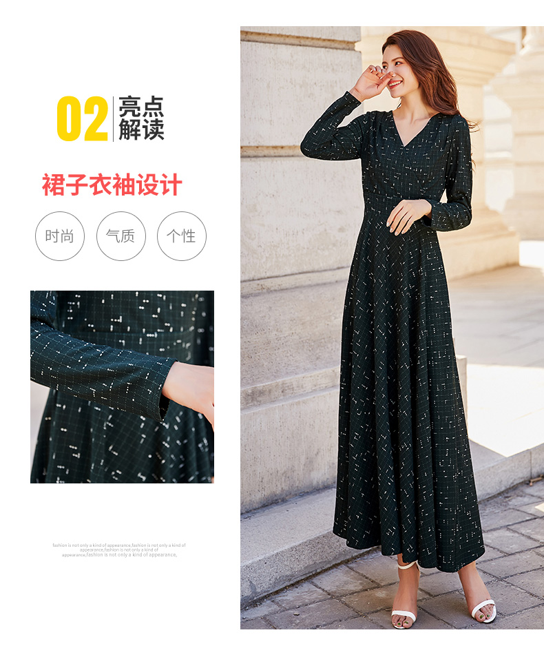 春秋長袖連衣裙長款到腳踝碎花裙子