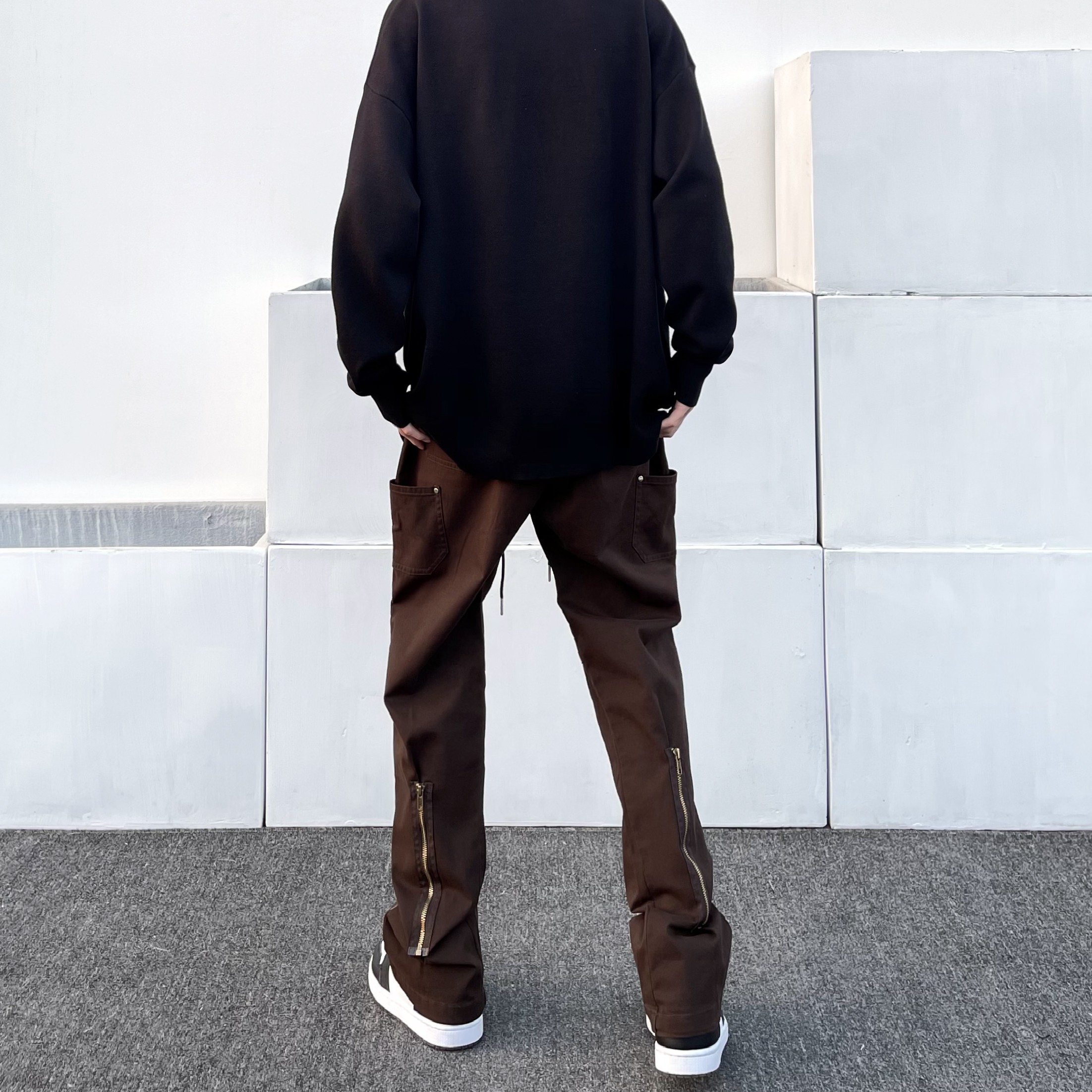 歐美高街kenijima同款vibe風工裝褲美式潮牌寬松復古直筒喇叭褲男
