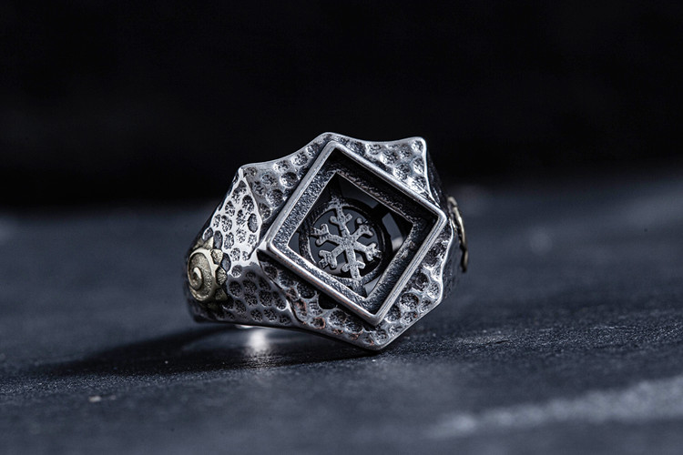 包郵S925純銀戒指空托情侶埃及法老符號銀飾個性新款戒托鑲嵌南紅