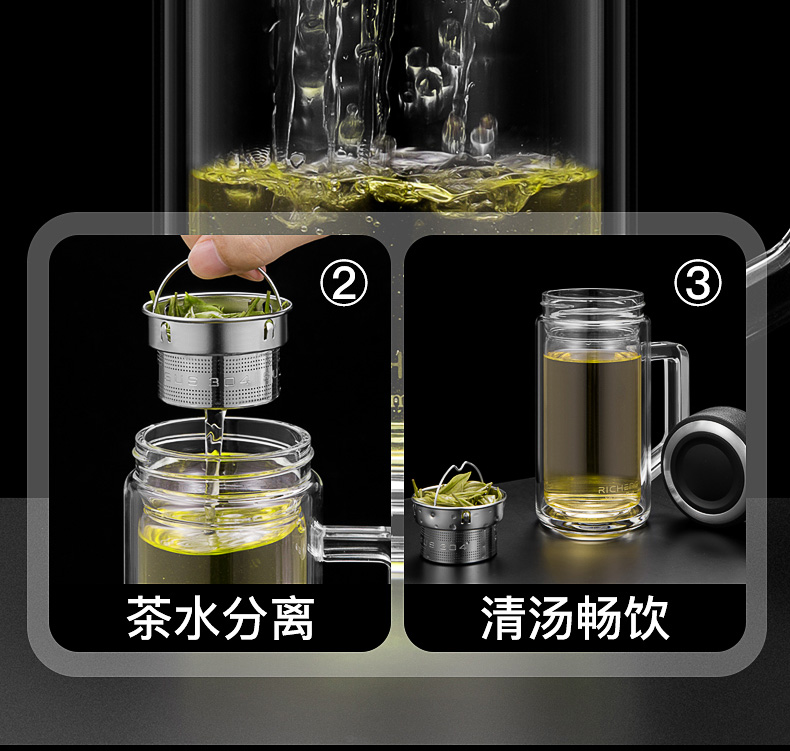 智能顯溫茶水分離雙層男高檔泡茶杯