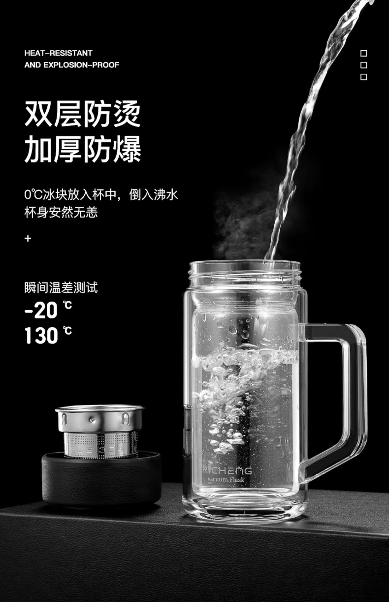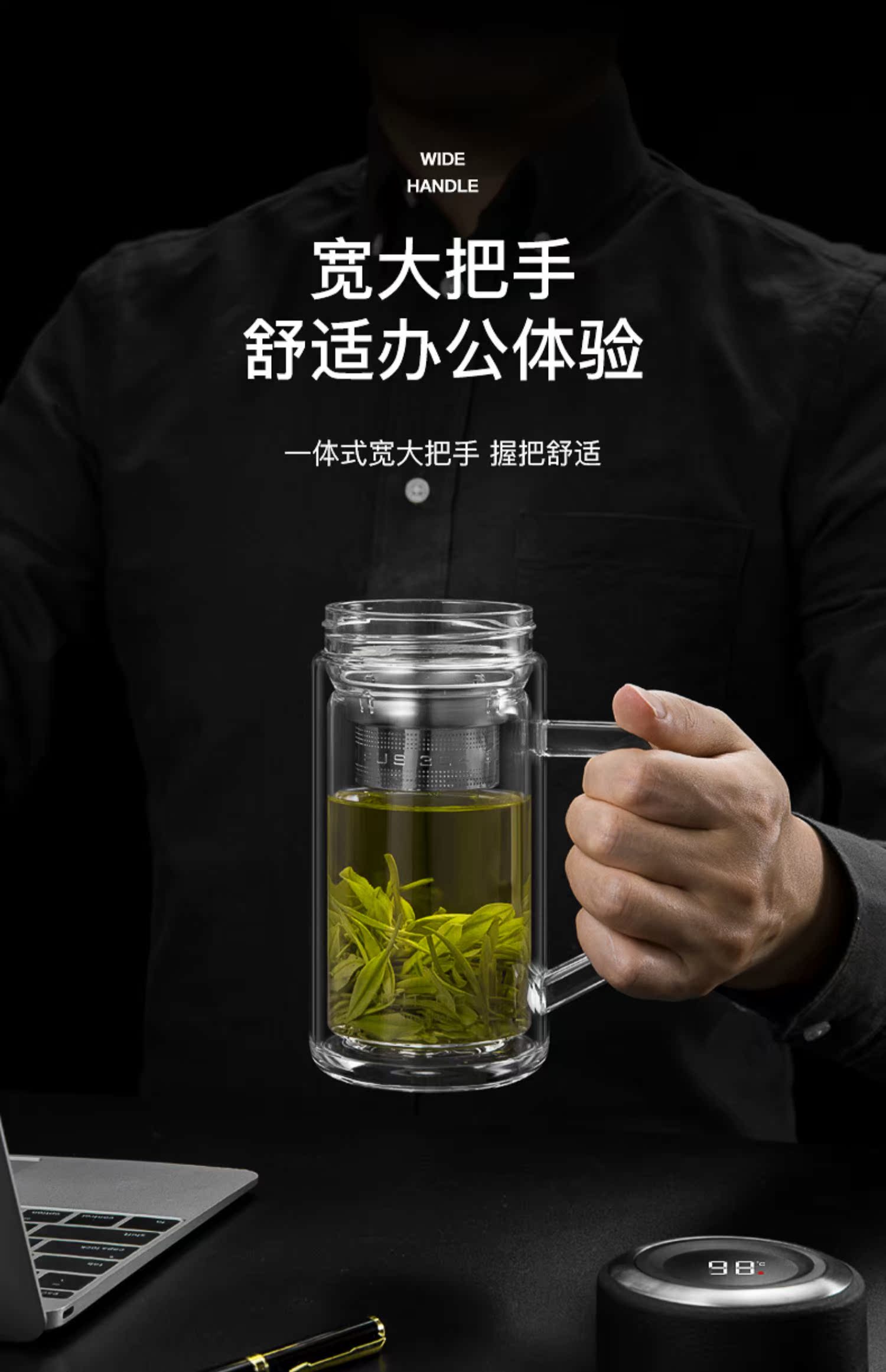 智能玻璃杯把手帶蓋大容量透明雙層耐熱加厚高檔男辦公室泡茶杯