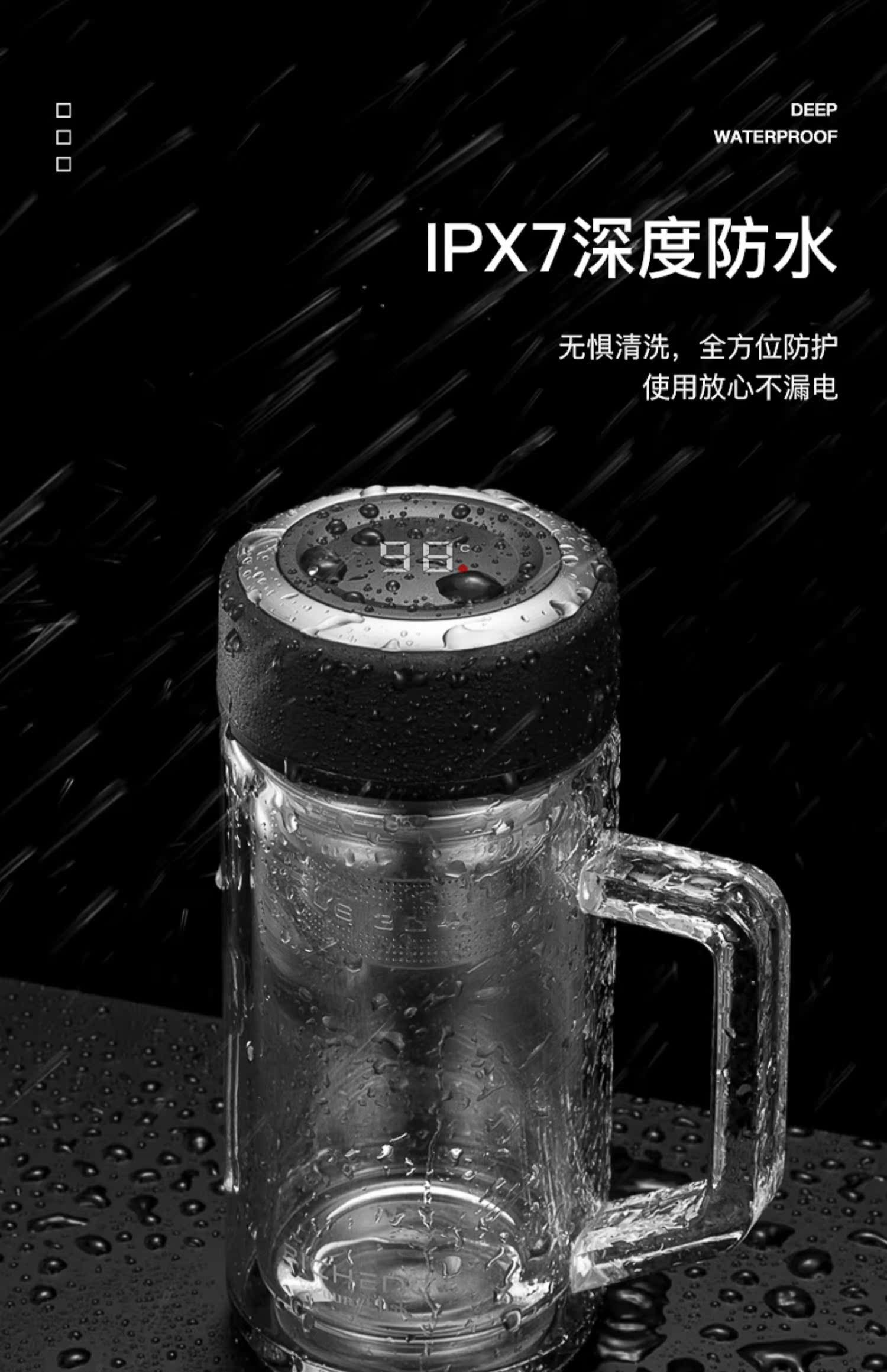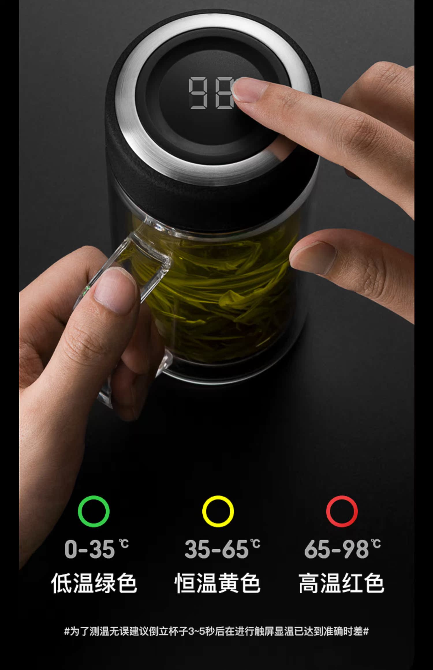 智能測溫雙層隔熱防摔男士泡玻璃杯