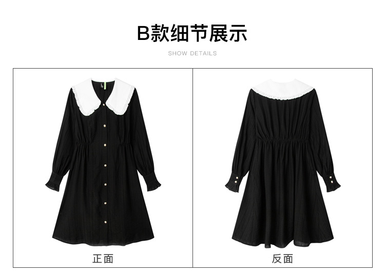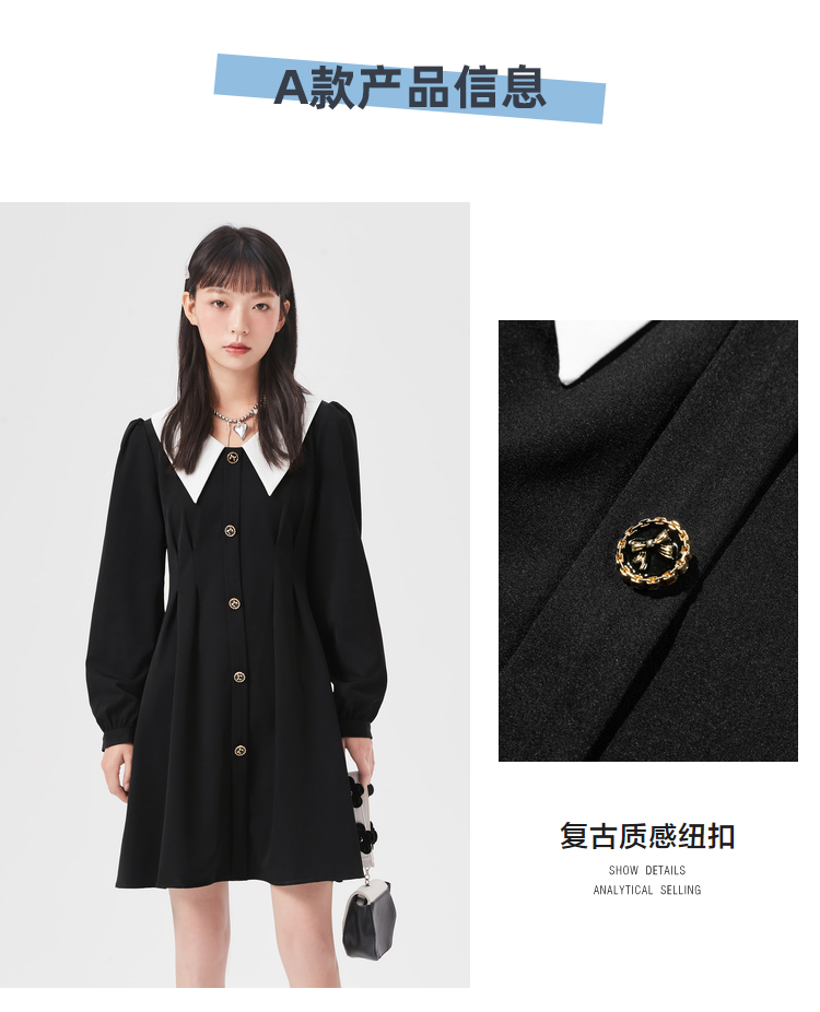 森馬連衣裙女2023秋季新款法式泡泡袖小黑裙赫本風中長款復古裙子
