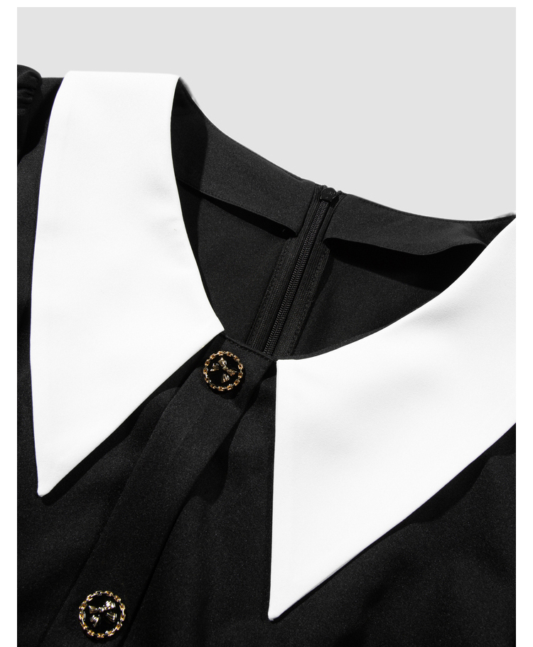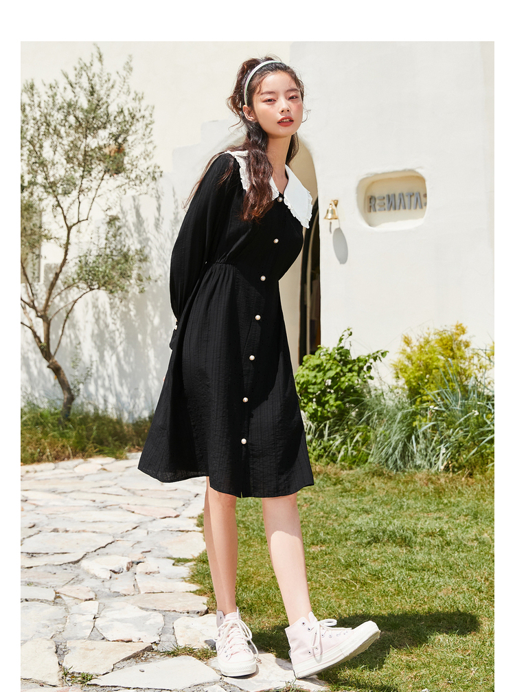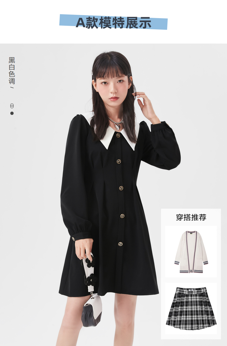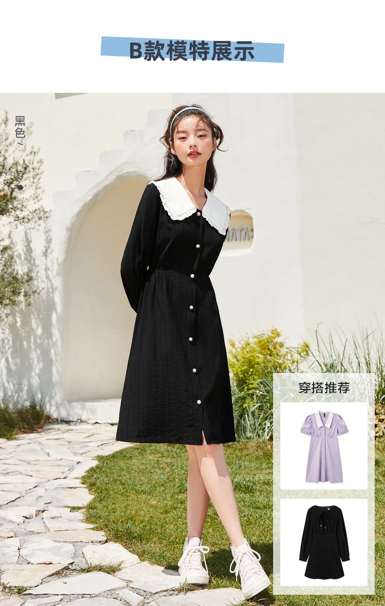 森馬蝴蝶結撞色小黑裙2023連衣裙