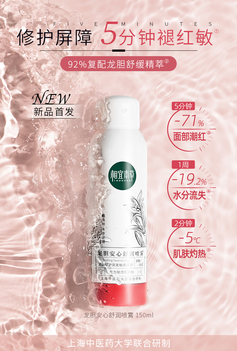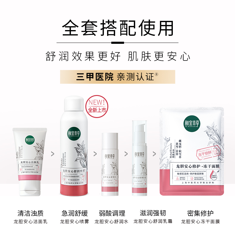 相宜本草龍膽安心舒潤抗敏感修護噴霧柔膚水舒緩保濕官方旗艦店女