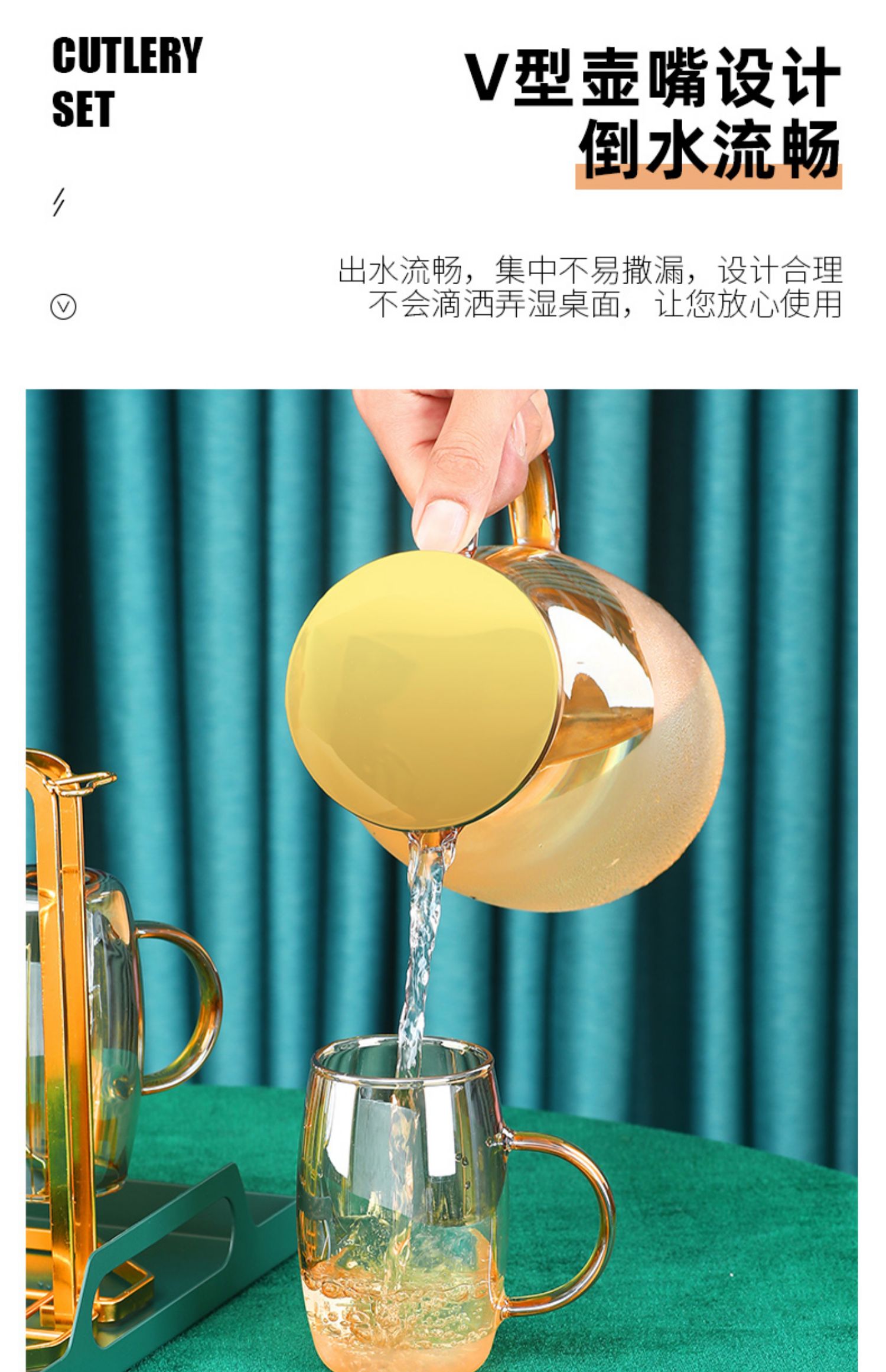 輕奢水杯套裝家用客廳冷水壺帶龍頭高檔大容量玻璃水果茶飲料水桶