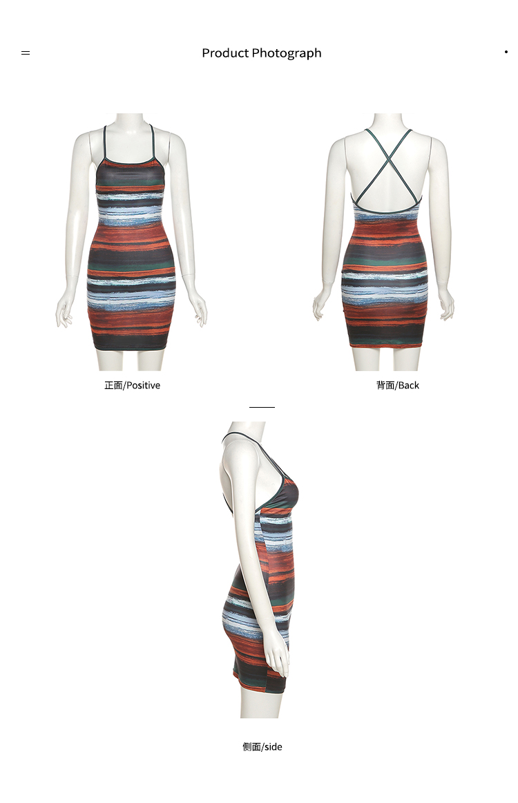 WEIRD PUSS美式復古氛圍感浪漫層次條紋連衣裙收腰顯瘦油畫吊帶裙