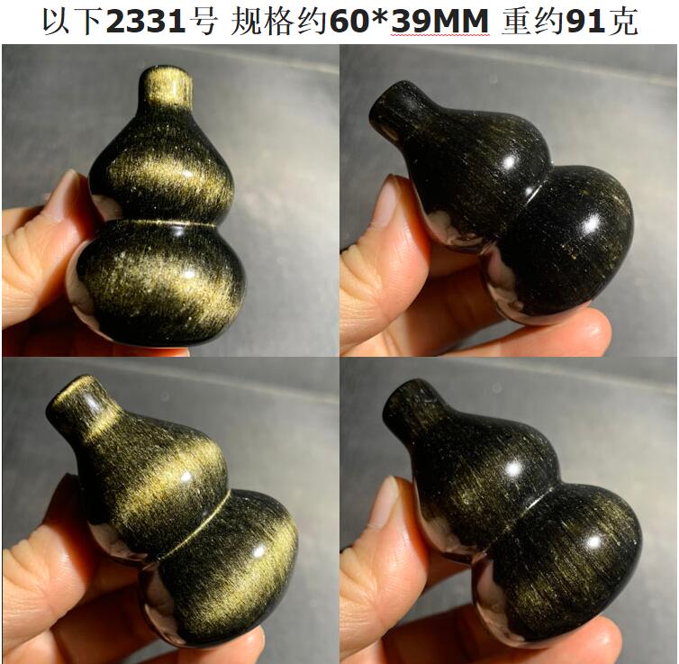 水玉冰魄天然貓眼黑曜石葫蘆把玩 彩曜石葫蘆手把件 水晶小擺件