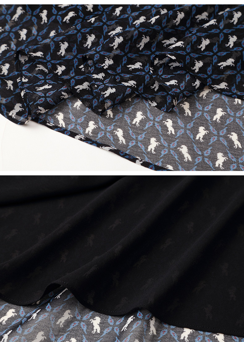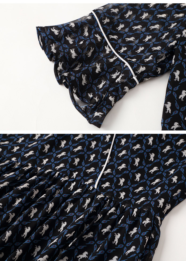 2023初秋新款v領喇叭袖黑色雪紡連衣裙假兩件前開叉名媛氣質a字裙
