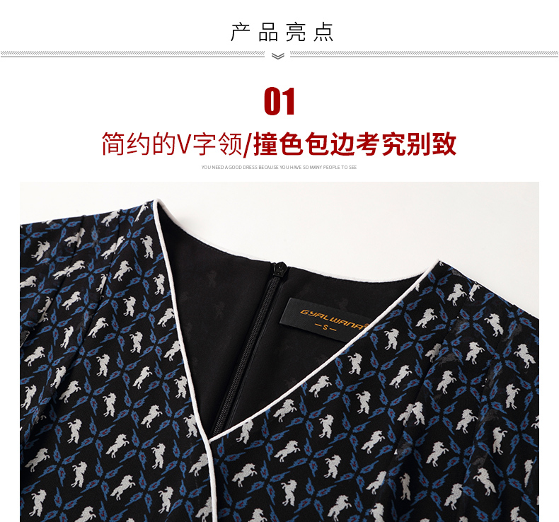 她池時尚連衣裙2023秋裝新款女裝氣質V領優雅碎花開叉裙擺中長裙