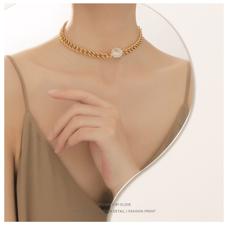 復古金箔珍珠花項鏈女輕奢高級感小眾設計2023新款choker頸鏈配飾