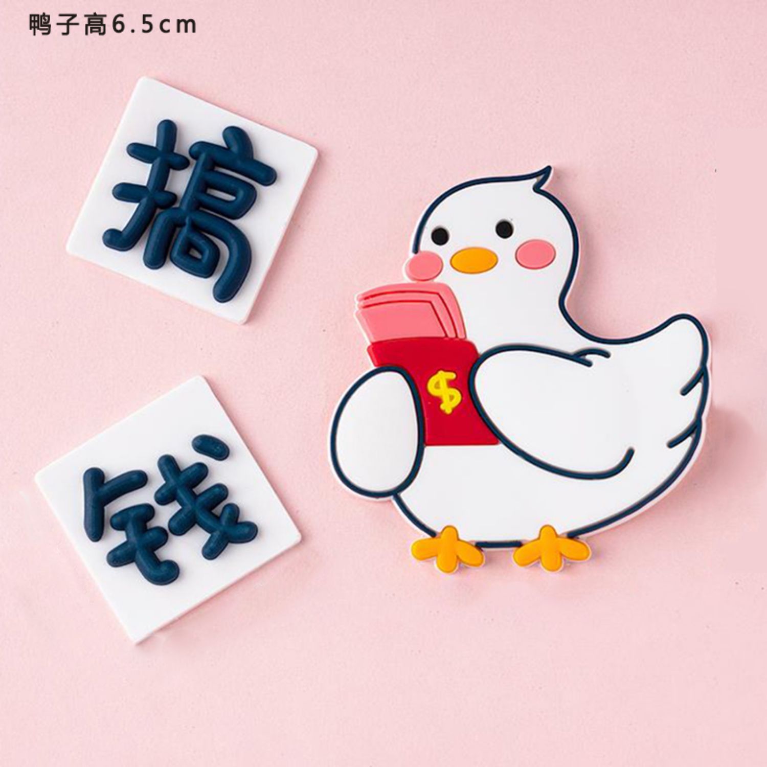 搞錢鴨蛋糕裝飾擺件平安喜樂簡約錢標軟膠鴨子新年跨年生日蛋糕