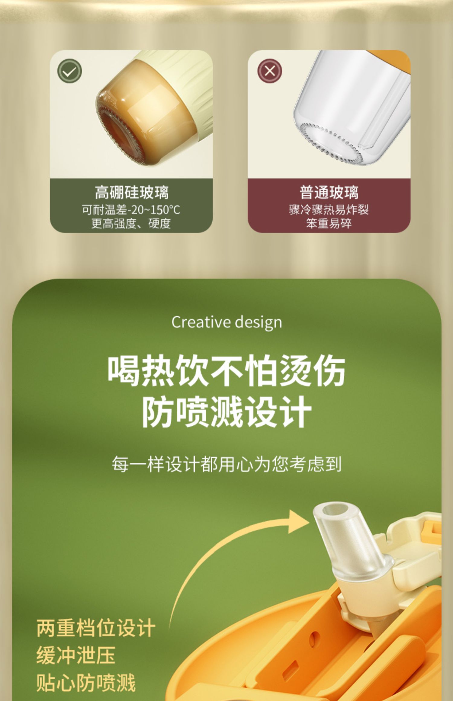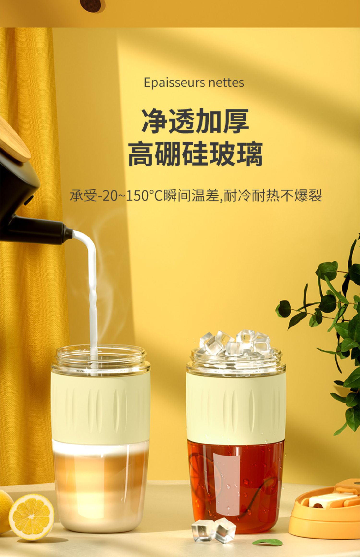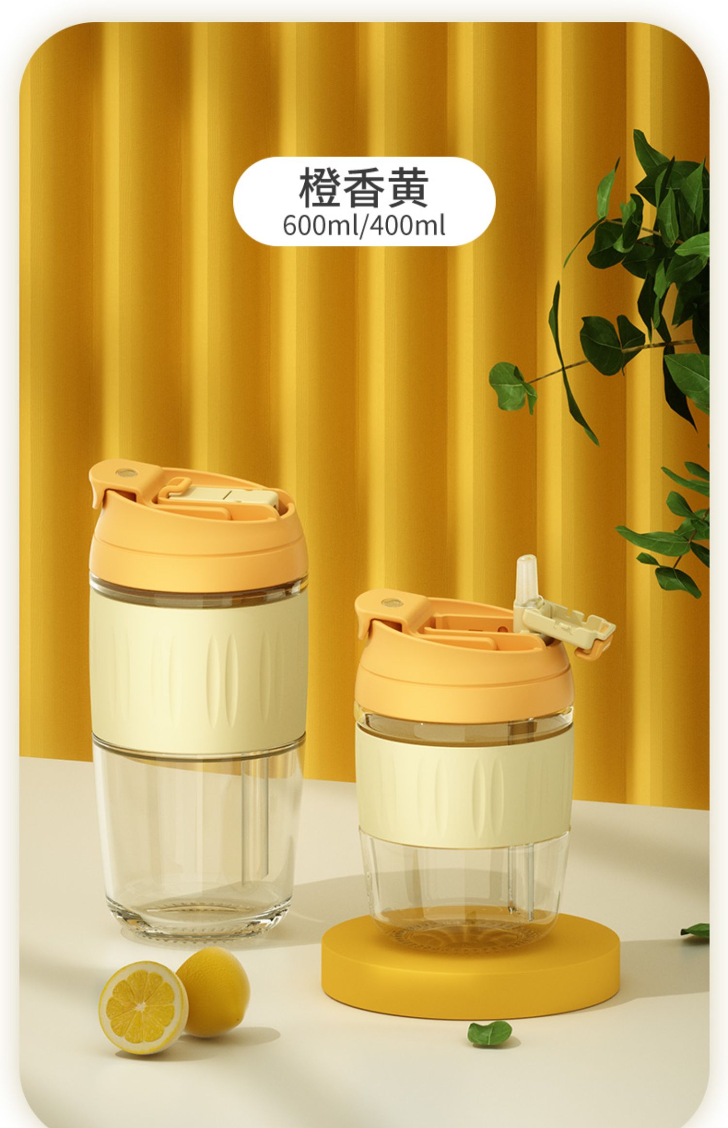 玻璃水杯子豆漿牛奶咖啡杯雙飲吸管泡茶杯帶蓋隨行便攜辦公室女夏