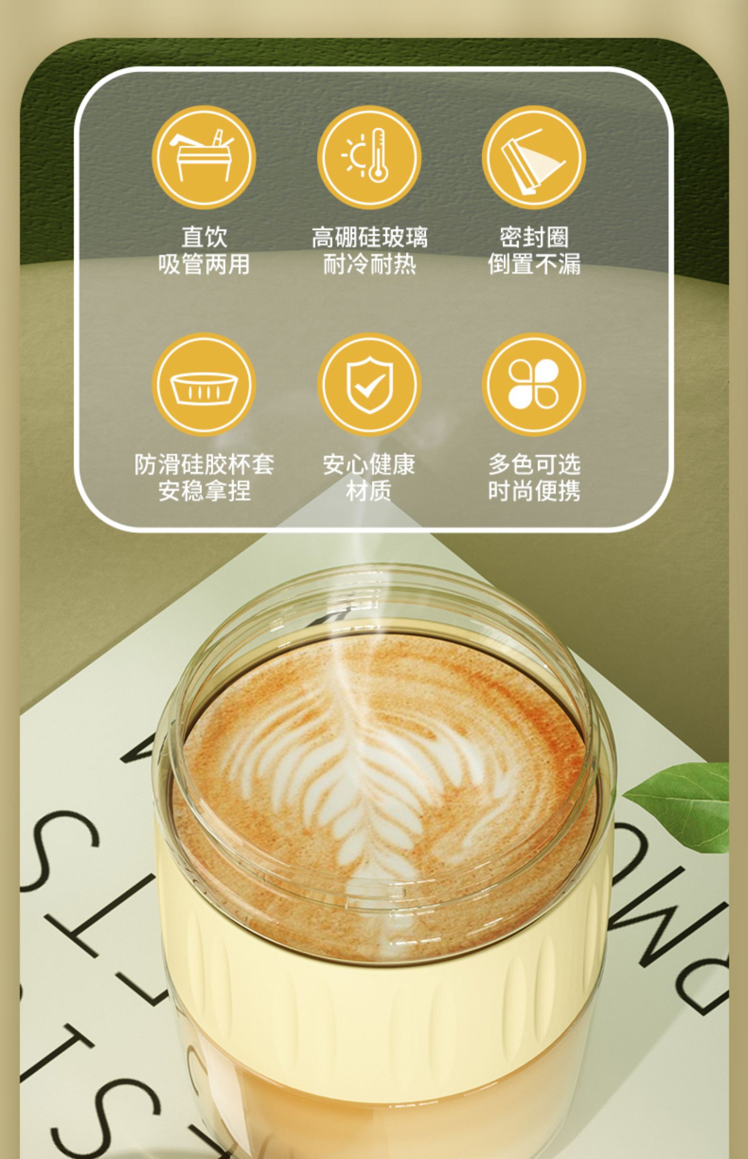 咖啡杯夏季便攜帶吸管隨手玻璃杯