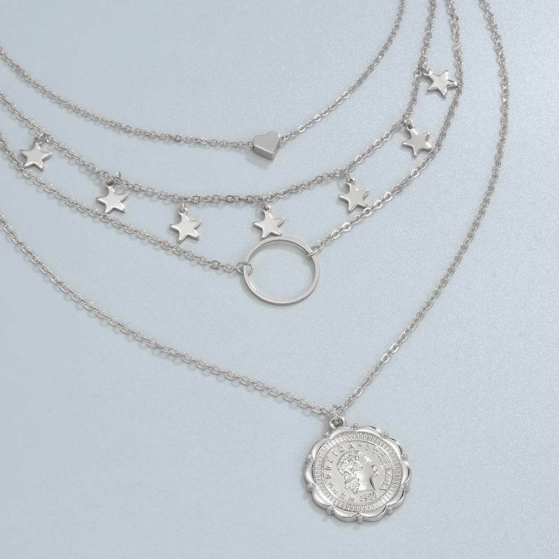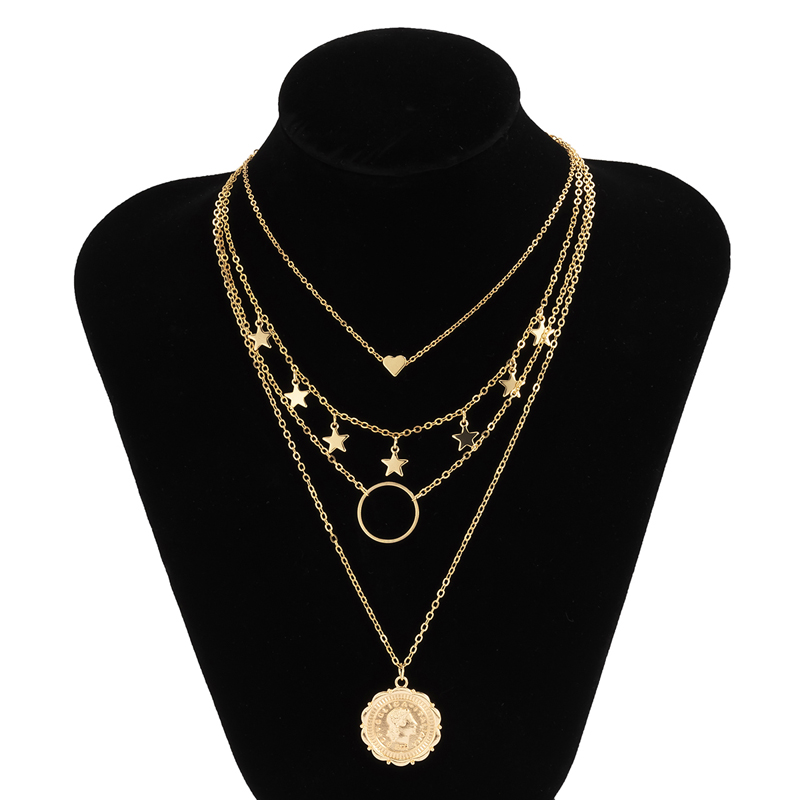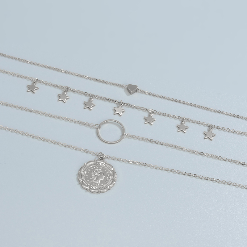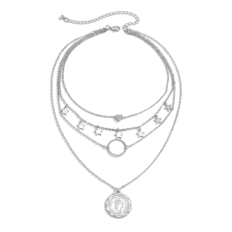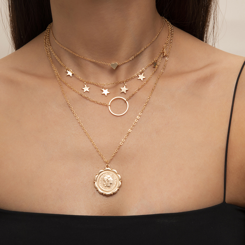 多層項鏈女式夏季鎖骨鏈2023年新款輕奢女王圓牌脖子配飾百搭潮牌