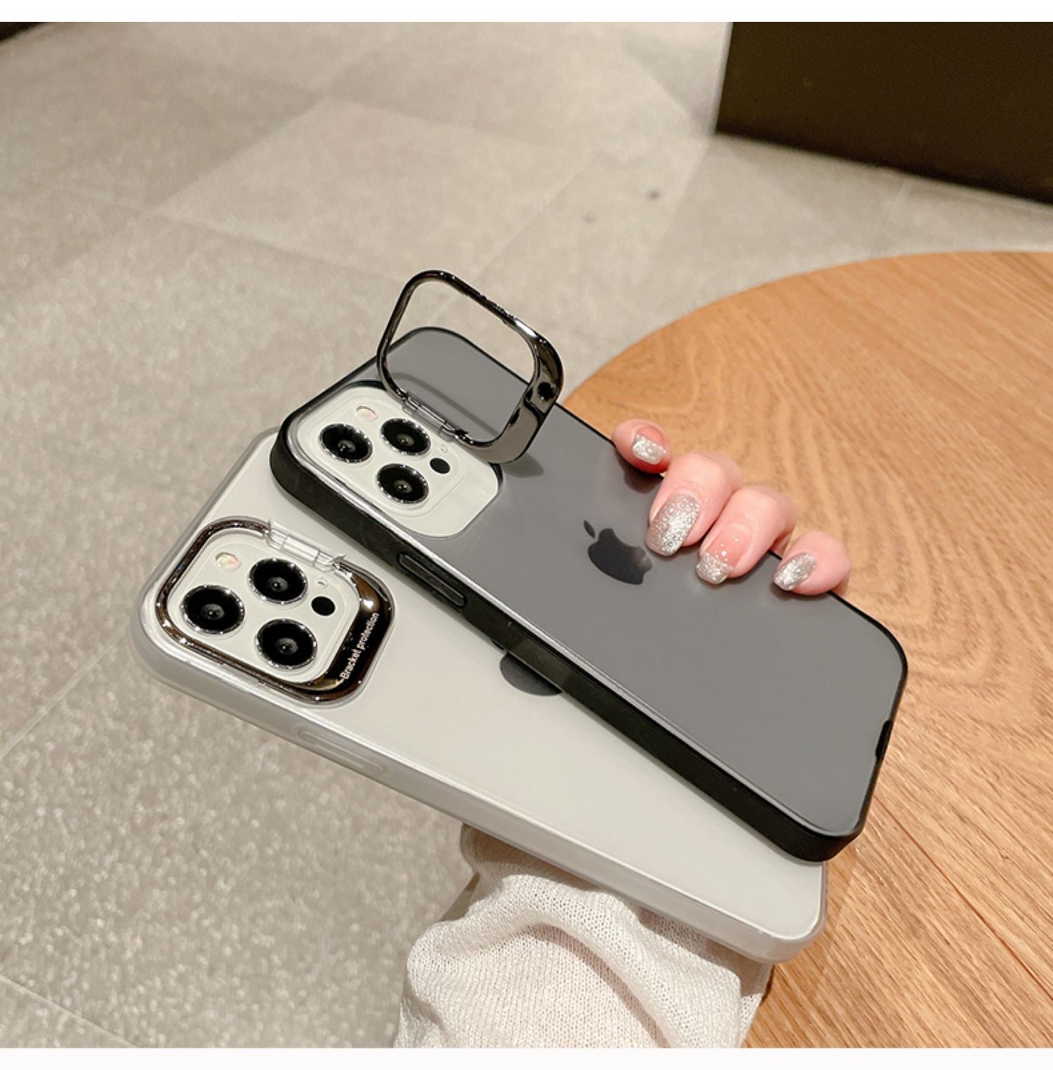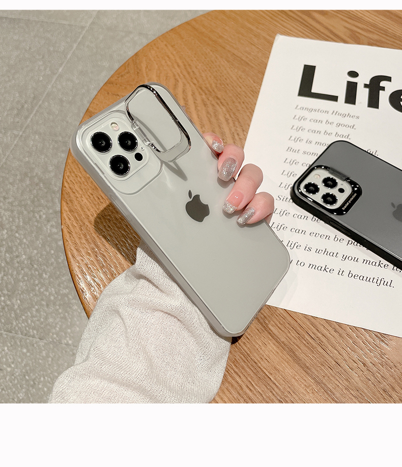 umj【折疊式玻璃鏡頭支架】新款透明硬殼適用iphone14pro手機殼14蘋果13proMax超薄電鍍13全包創意保護套男女