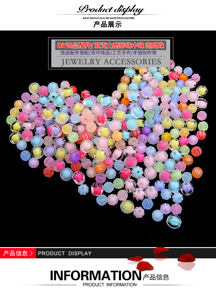 亞克力磨砂混彩五瓣花愛心珠中珠