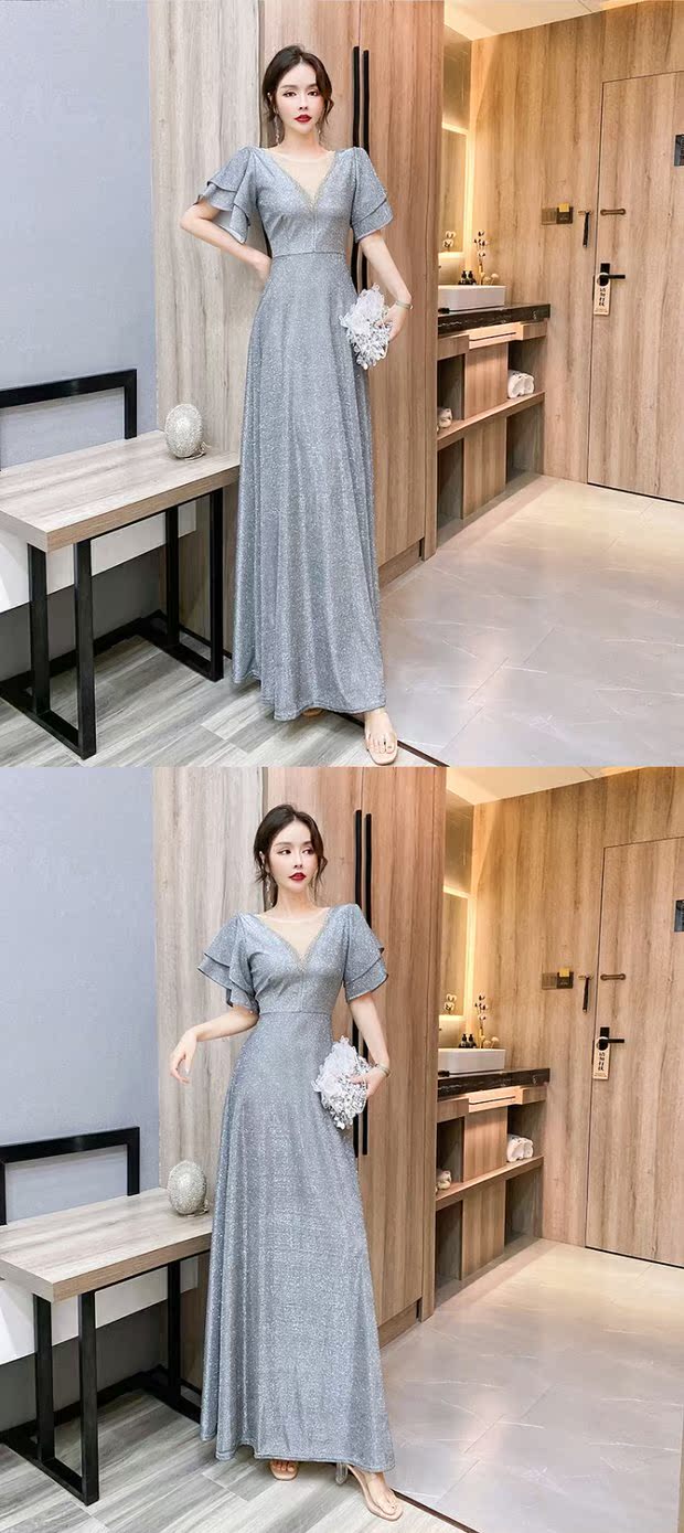 2022宴會晚禮服裙女新款氣質優雅圓領亮絲長款主持人大擺禮服長裙