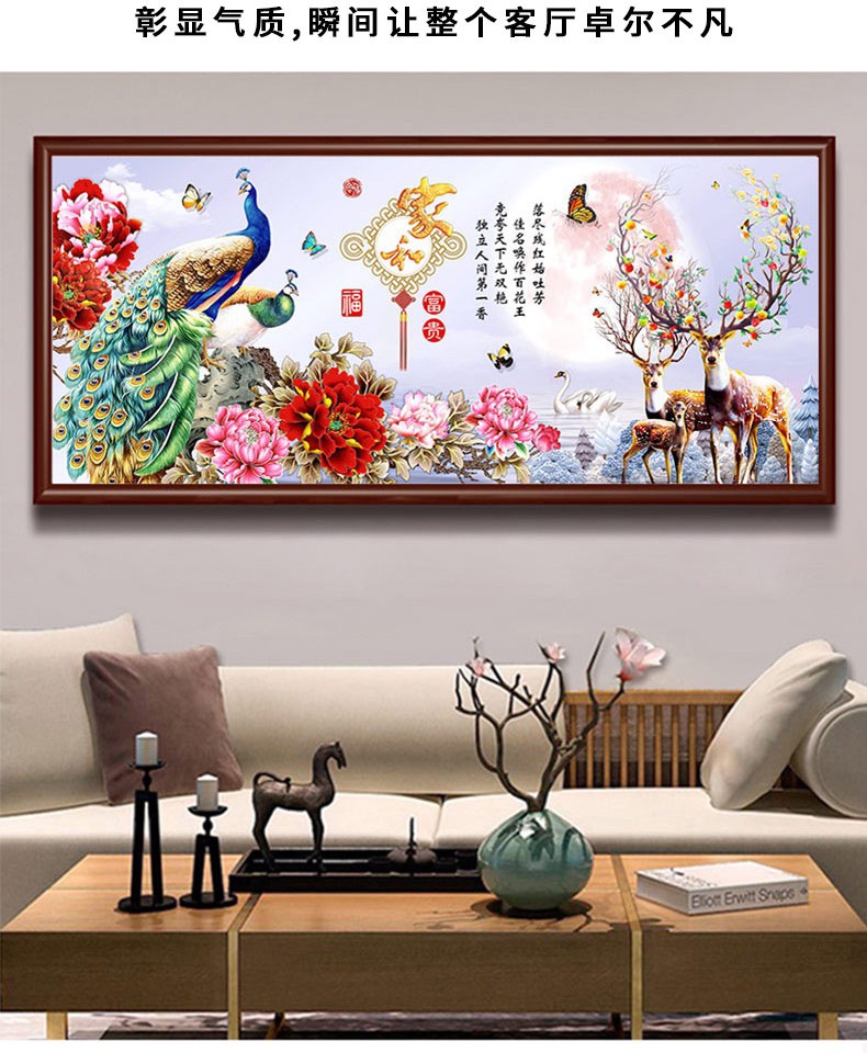 2023新款客廳滿鉆孔雀發財鹿十字繡