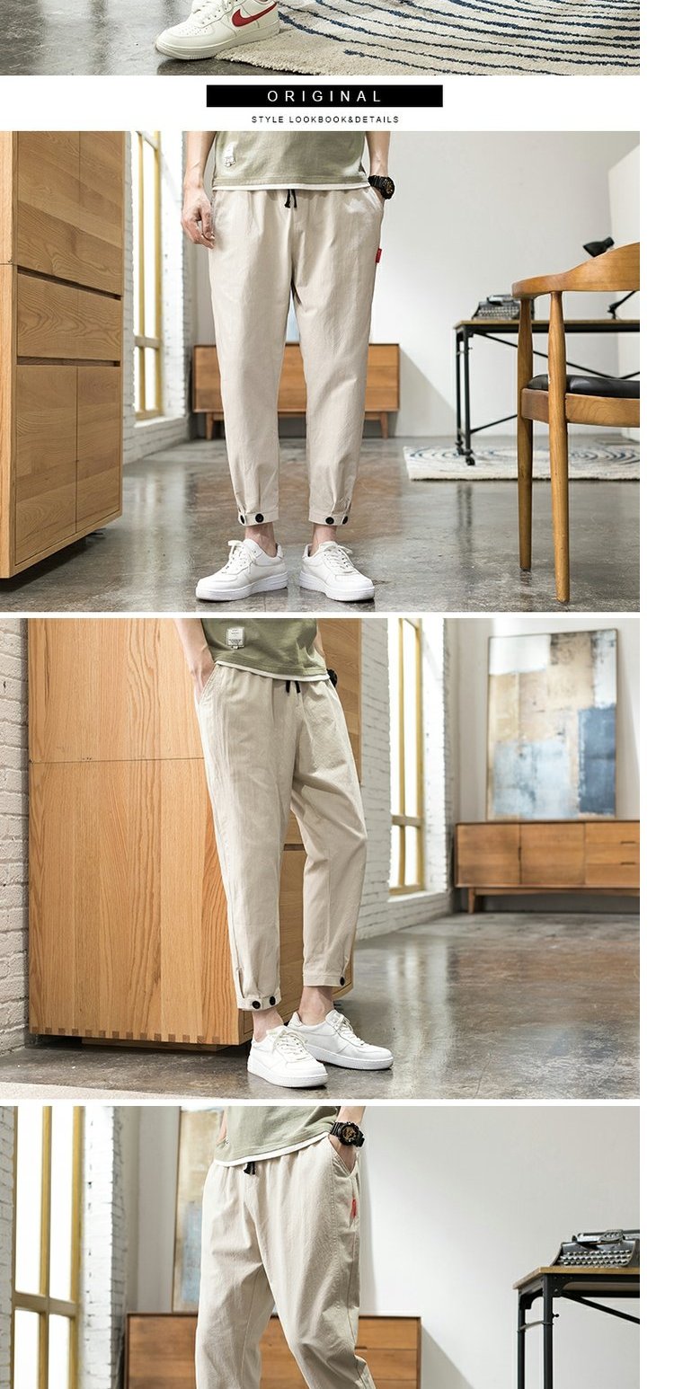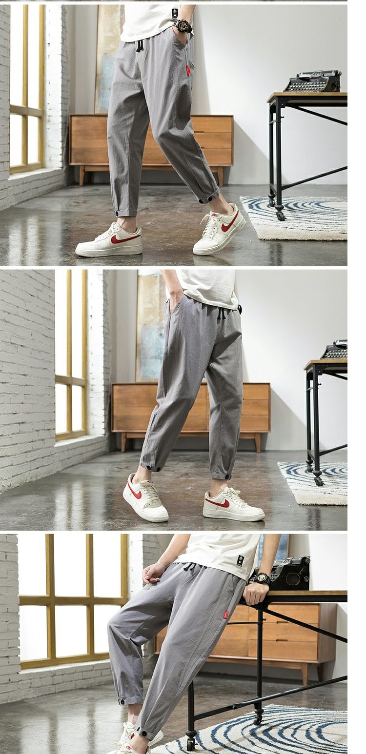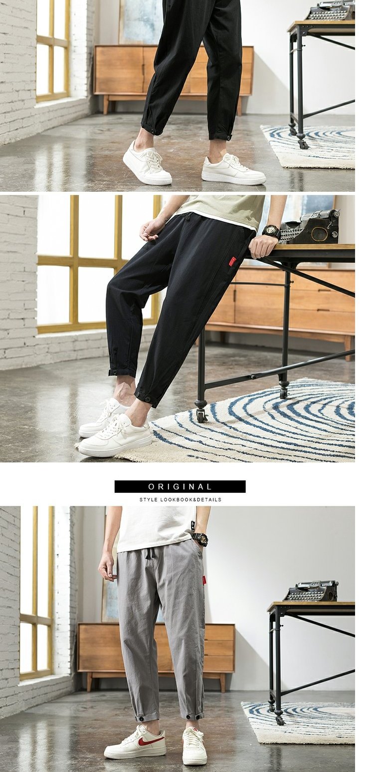 棉麻子男夏季束腳哈倫褲胖子闊腿褲