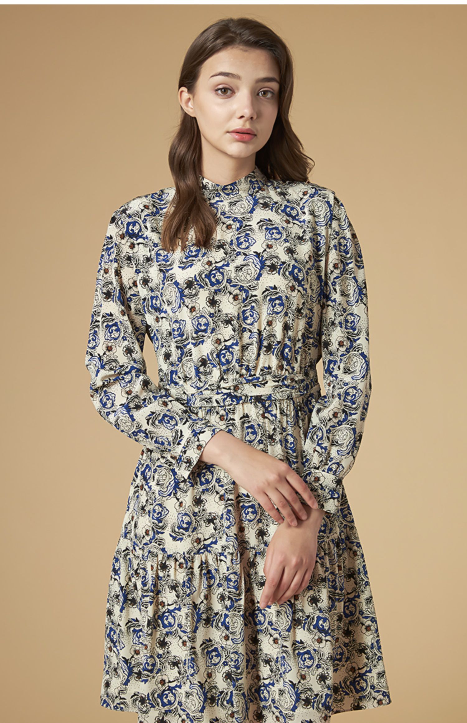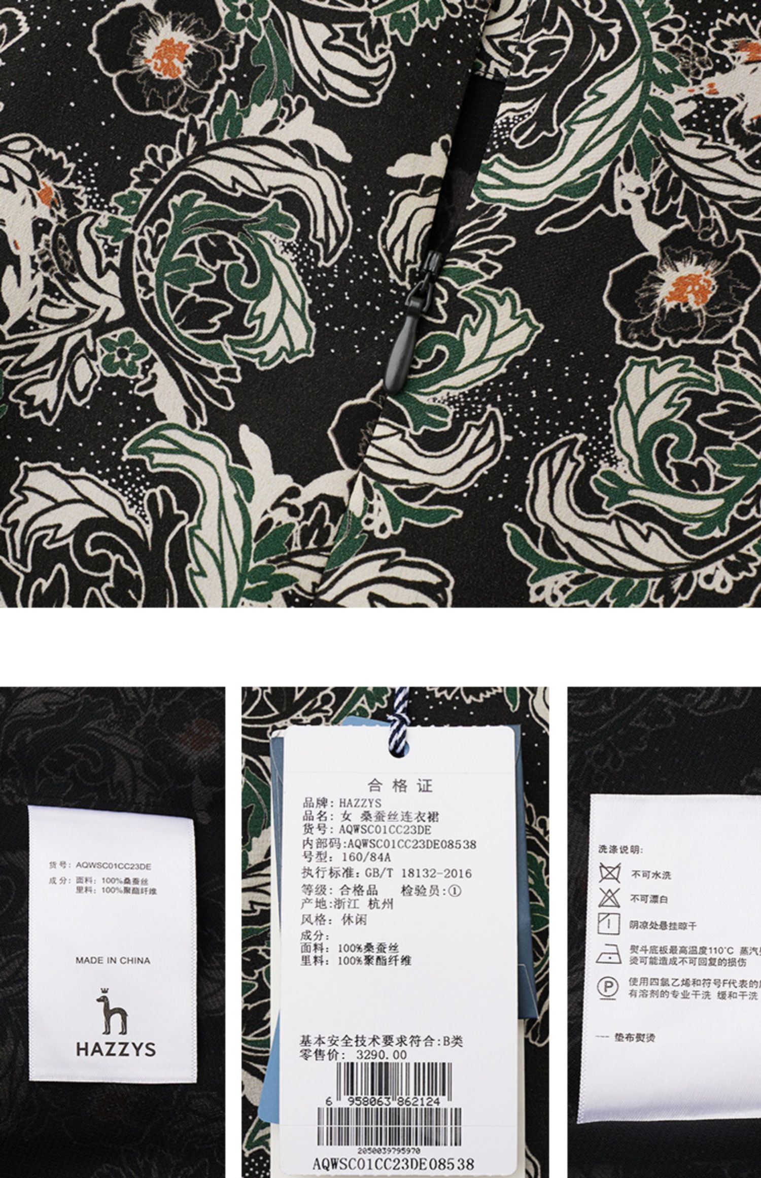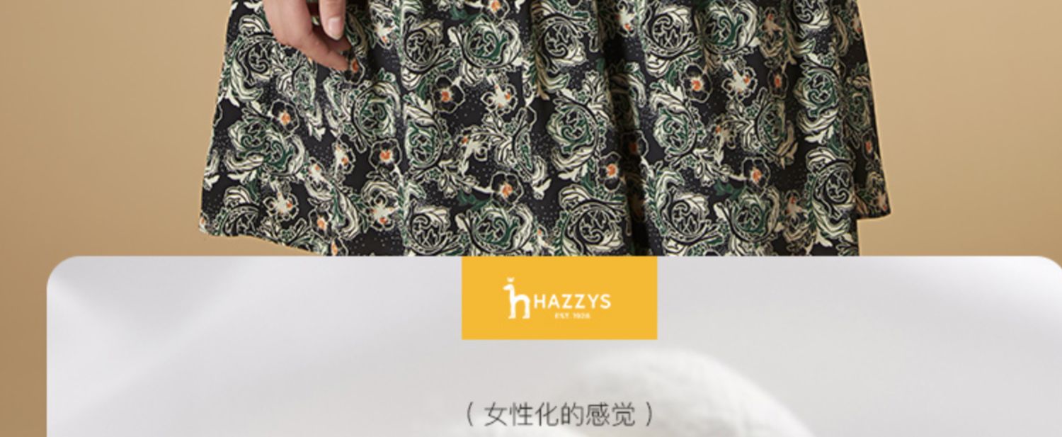 Hazzys哈吉斯官方春秋新款女士連衣裙修身氣質顯瘦碎花裙子韓版