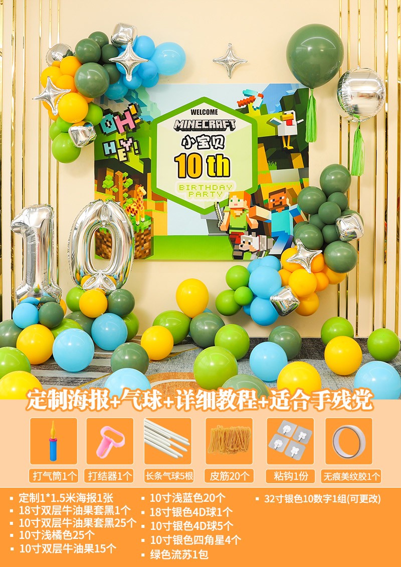 我的世界主題生日派對裝飾場景布置10十歲男孩拍照氣球背景墻kt板