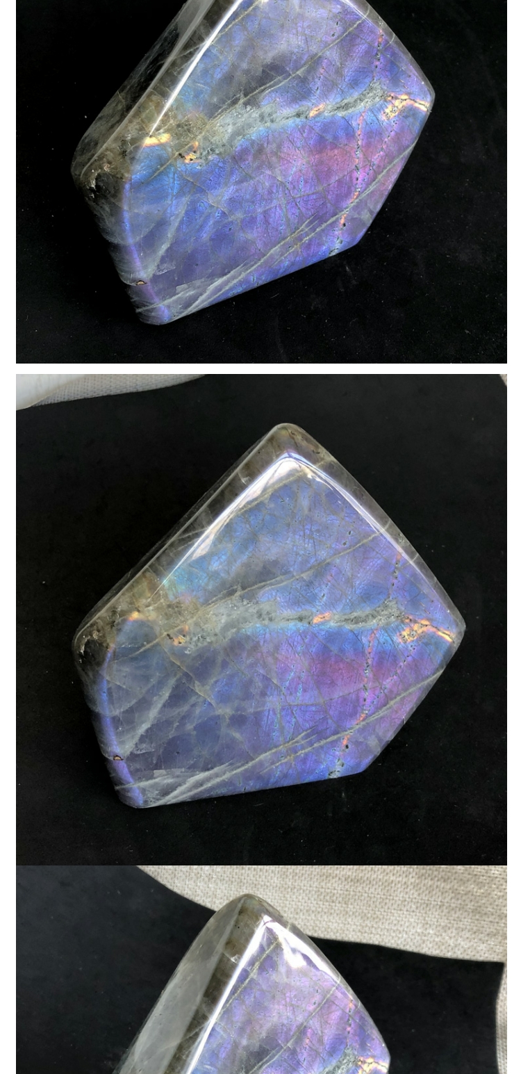 水玉冰魄天然紫拉長石擺件 鈉長石家居擺飾 紫光觀賞石送底座漂亮
