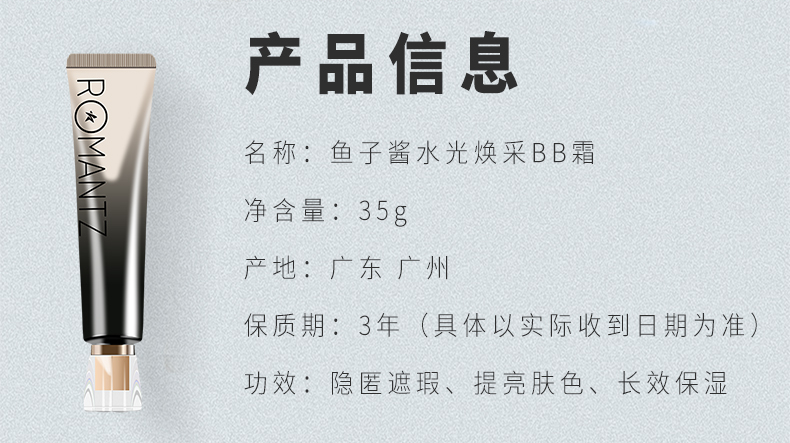 雅美姿魚子醬水光煥彩BB霜遮瑕不脫妝保濕控油粉底液象牙白奶油肌