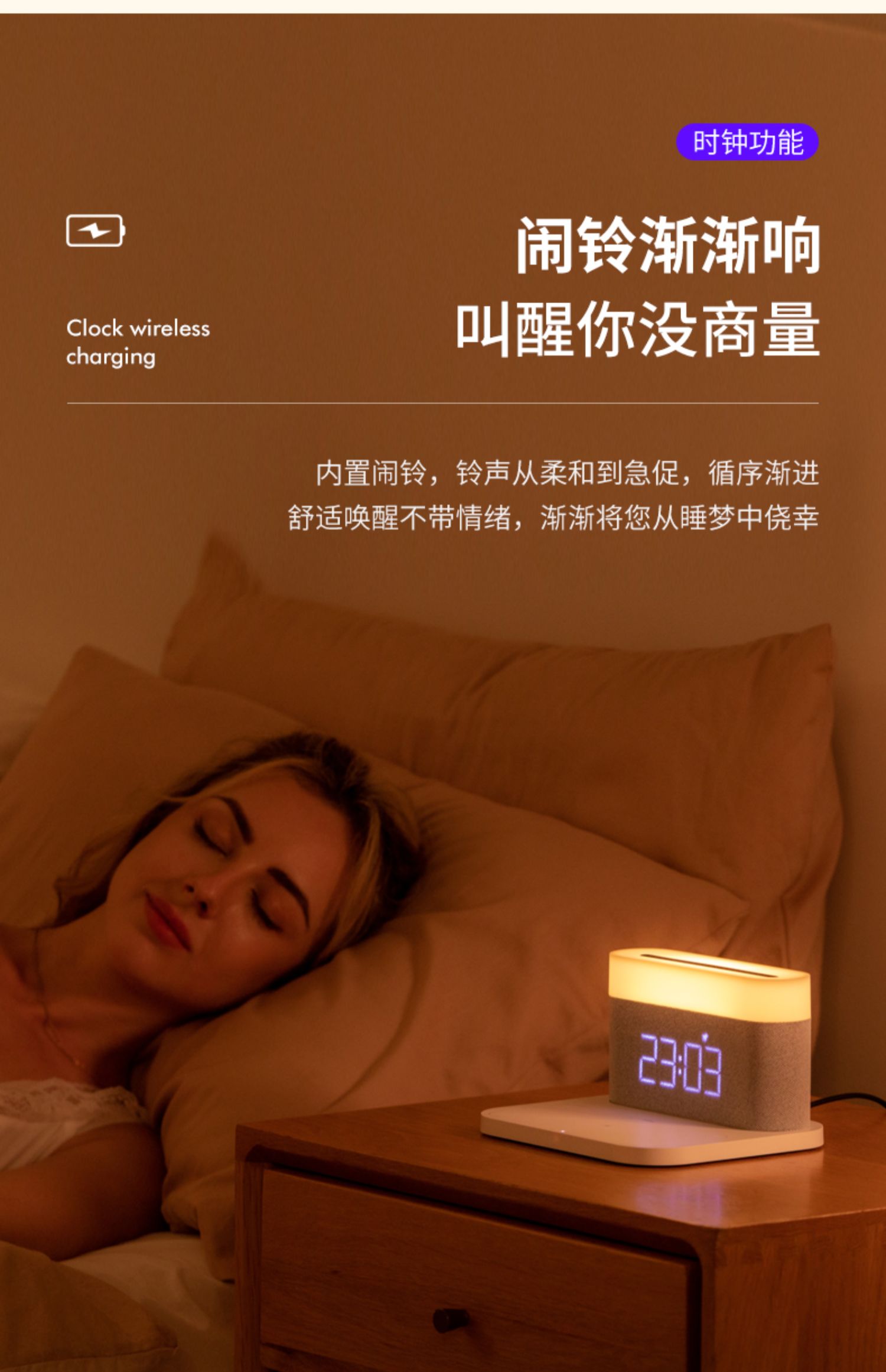 北極星智能電子鬧鐘兒童床頭鐘表桌面無線充電器夜燈時鐘起床鬧鈴
