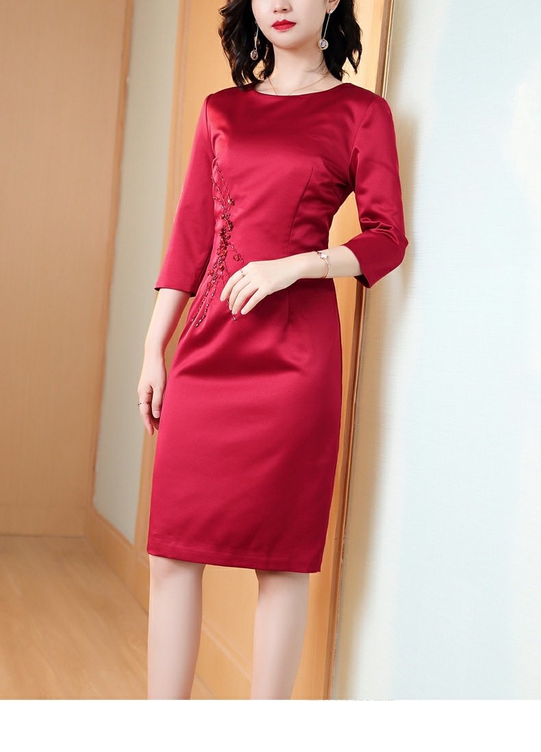 紅色連衣裙女2023秋冬新款氣質收腰顯瘦長袖圓領包臀宴會禮服裙子