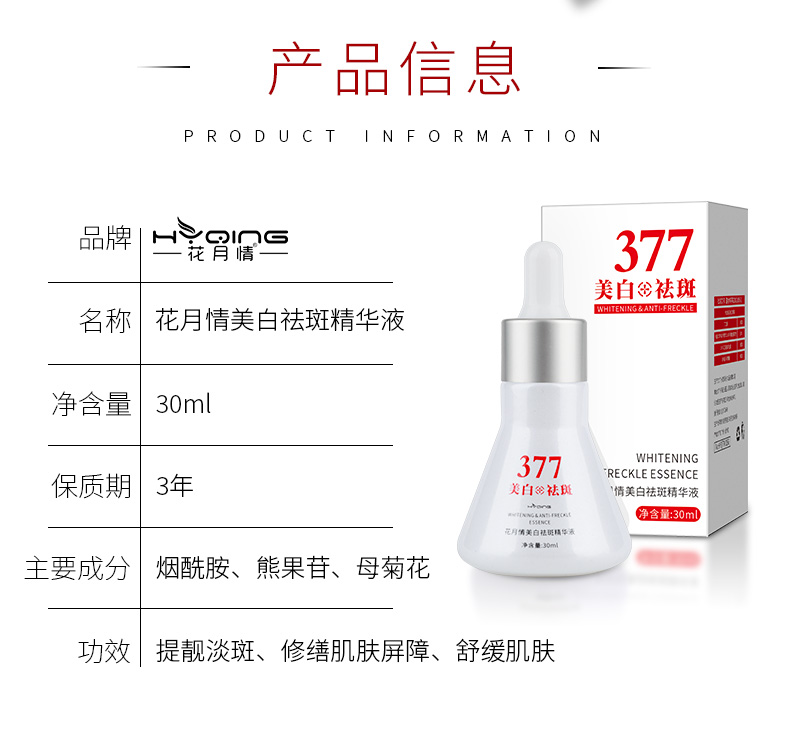 花月情377美白祛斑精華液淡化色斑黃褐斑祛斑液提亮膚色補水保濕