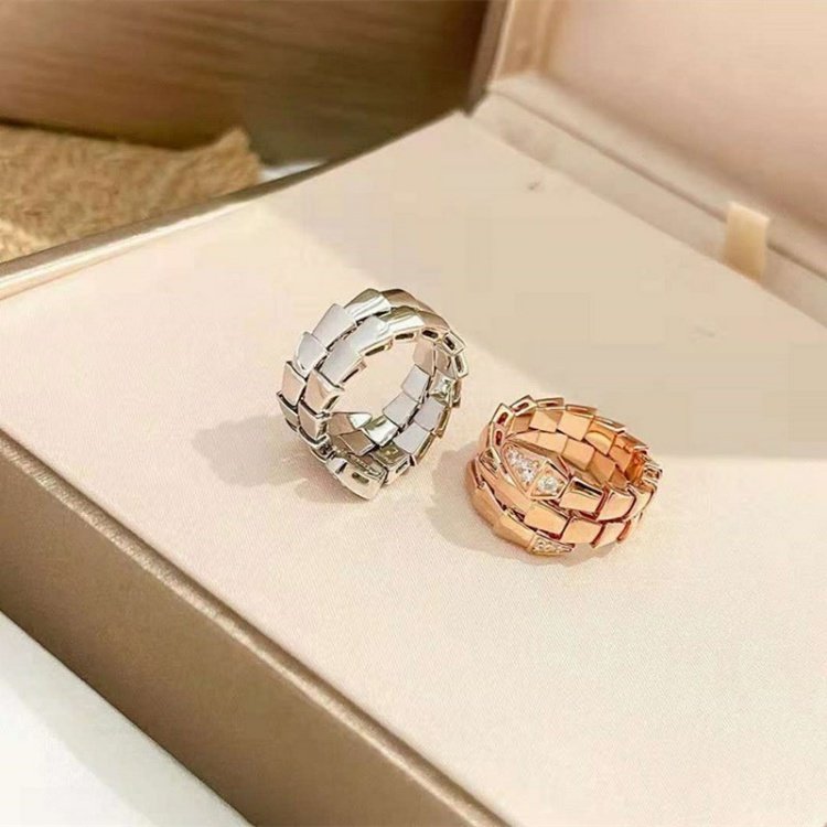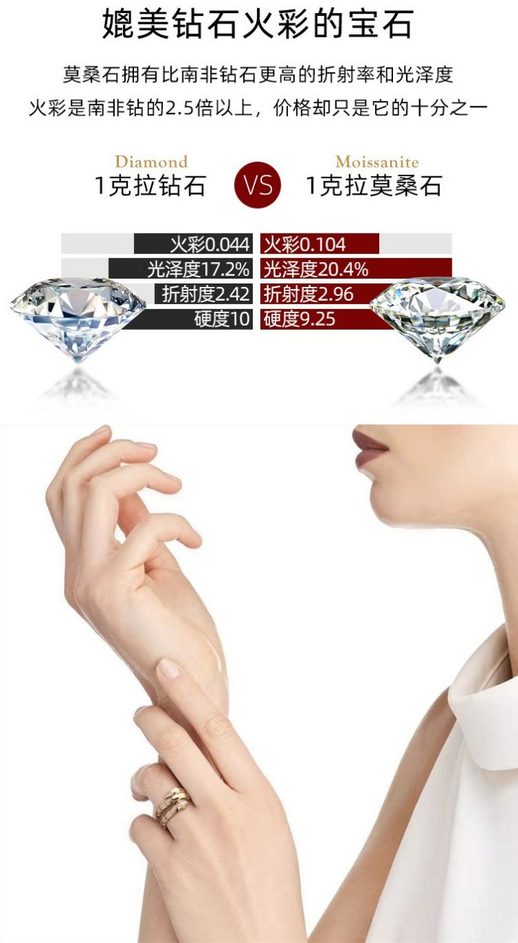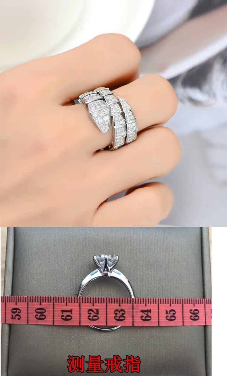 AU750玫瑰金首尾鉆蛇形戒指進口可過筆D色莫桑滿鉆寬窄版食指指環