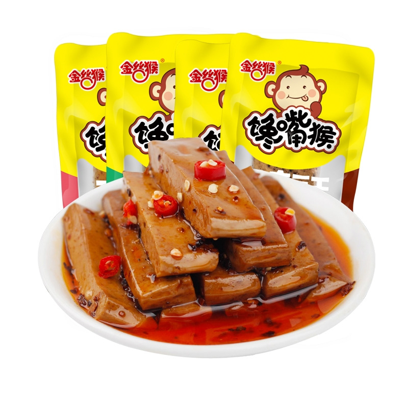 金絲猴饞嘴猴薄豆干五香燒烤泡椒雞汁散稱休閑小零食袋裝500克