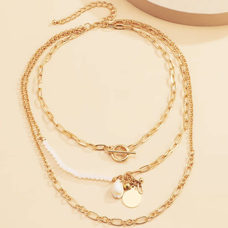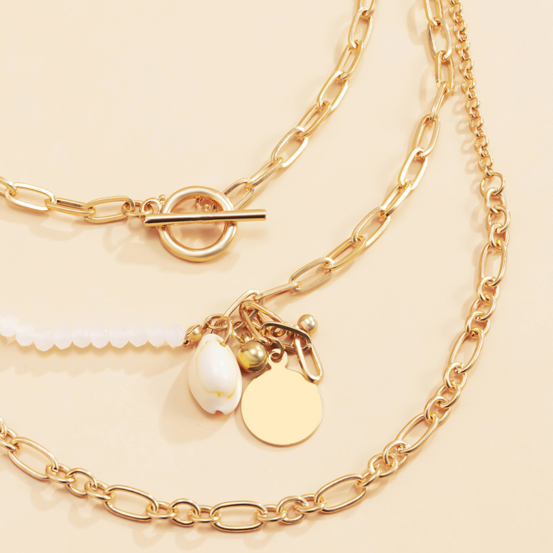 潮牌多層項鏈女ins冷淡風網紅嘻哈疊戴貝殼圓片吊墜毛衣鏈配飾