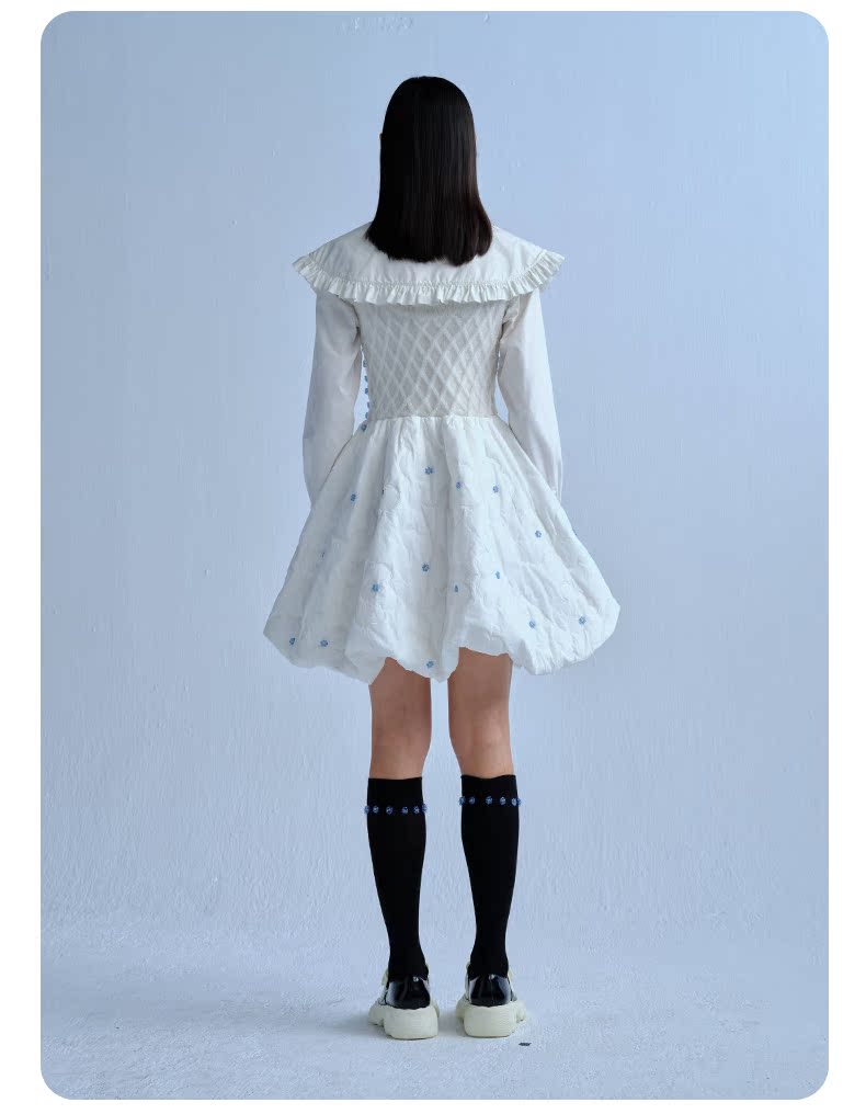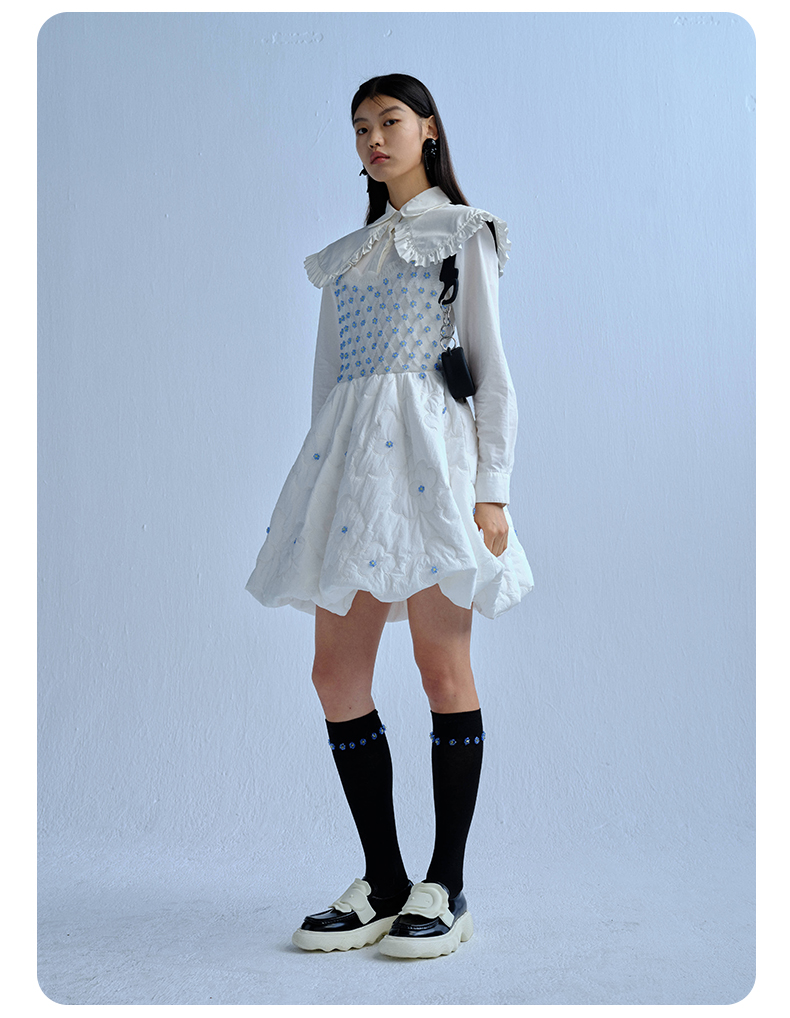 【SHUSHUTONG】蕾虎經典款釘珠荷葉邊襯衫連衣裙女