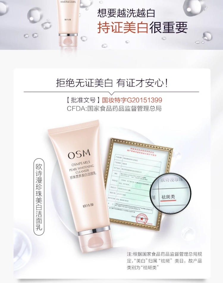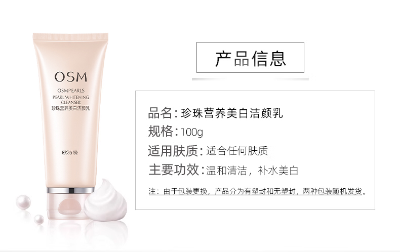 歐詩漫珍珠白洗面奶潔面乳潔顏清潔美白淡斑補水保濕天貓U先試用